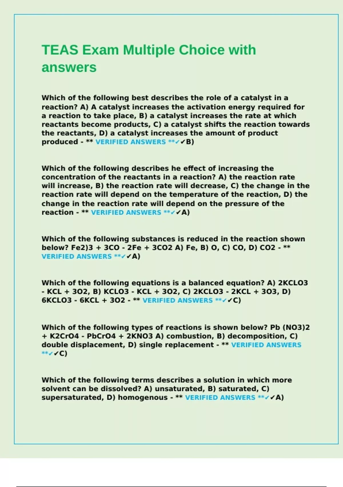 TEAS Exam Multiple Choice with