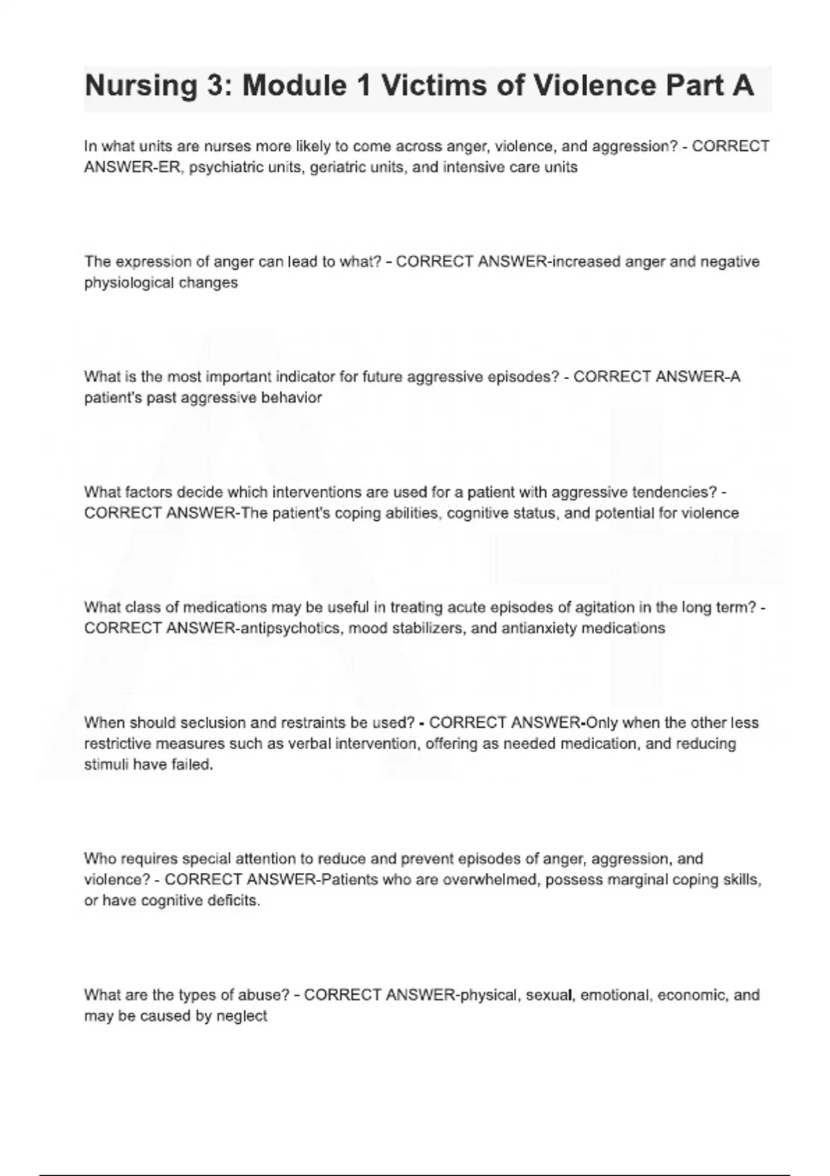 Nursing 3_ Module 1 Victims of Violence Part A Questions and Verified Answers |100% Correct | Complete solution | A+ Grade | Latest Update 2024 / 2025