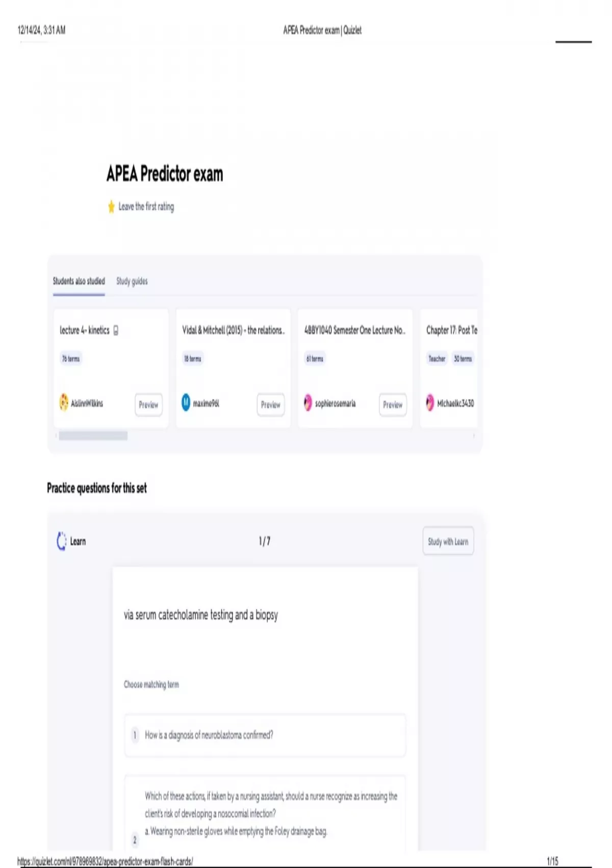 ,12/14/24, 3:31 AM APEA Predictor exam | Quizlet