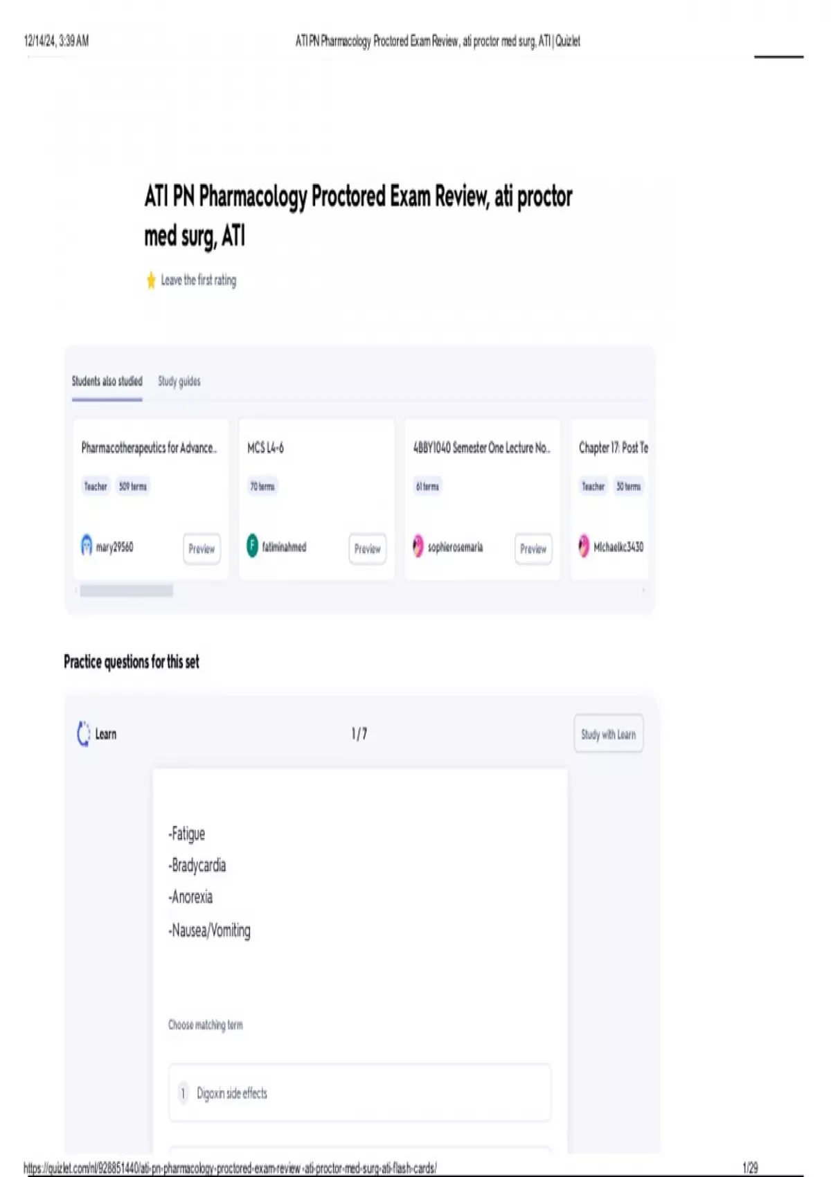 , 12/14/24, 3:39 AM ATI PN Pharmacology Proctored Exam Review , ati proctor med surg, ATI | Quizlet