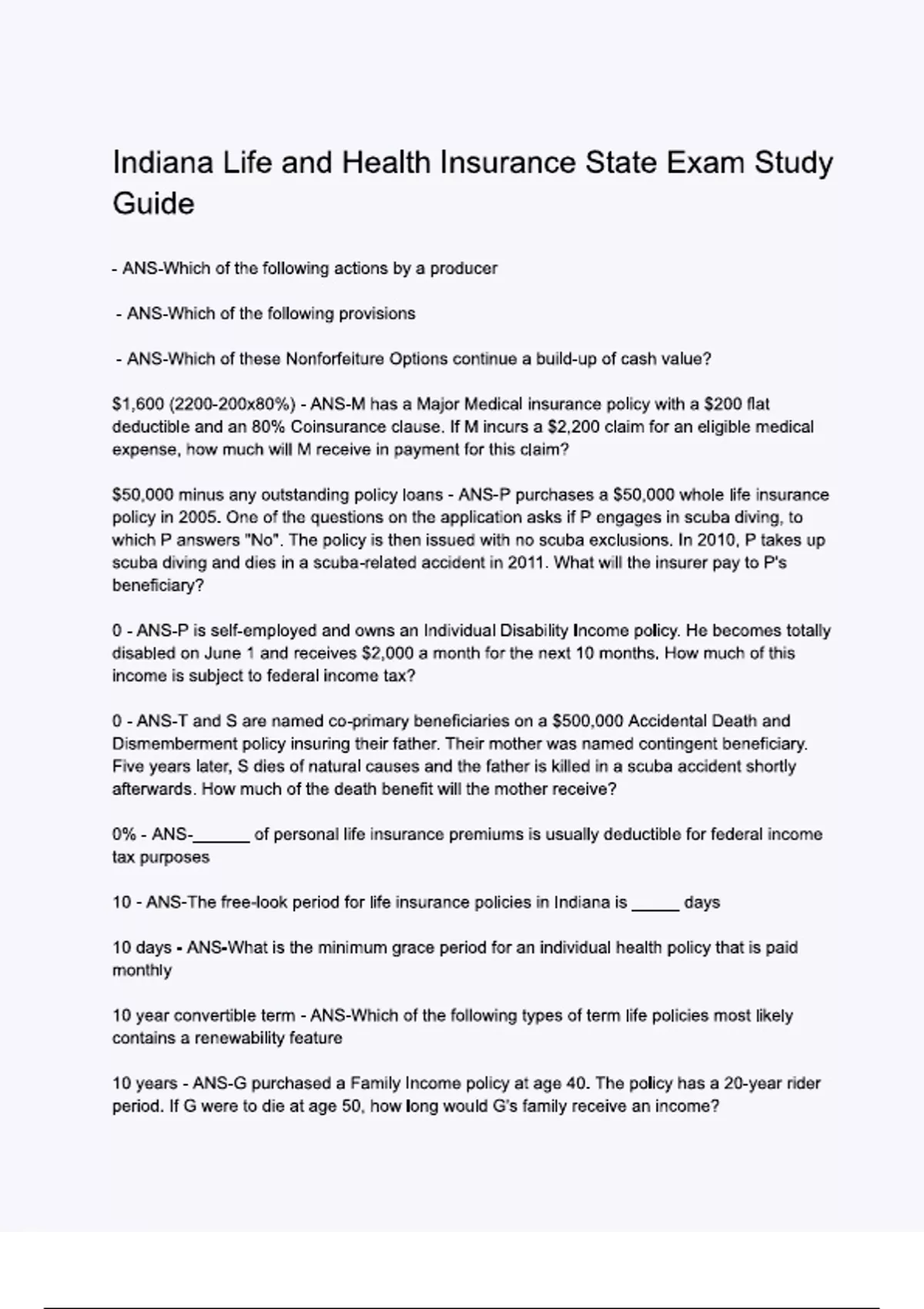 Indiana Life and Health Insurance State Exam Study Guide Questions and Verified Answers |100% Correct | Complete solution | A+ Grade | Latest Update 2024 / 2025