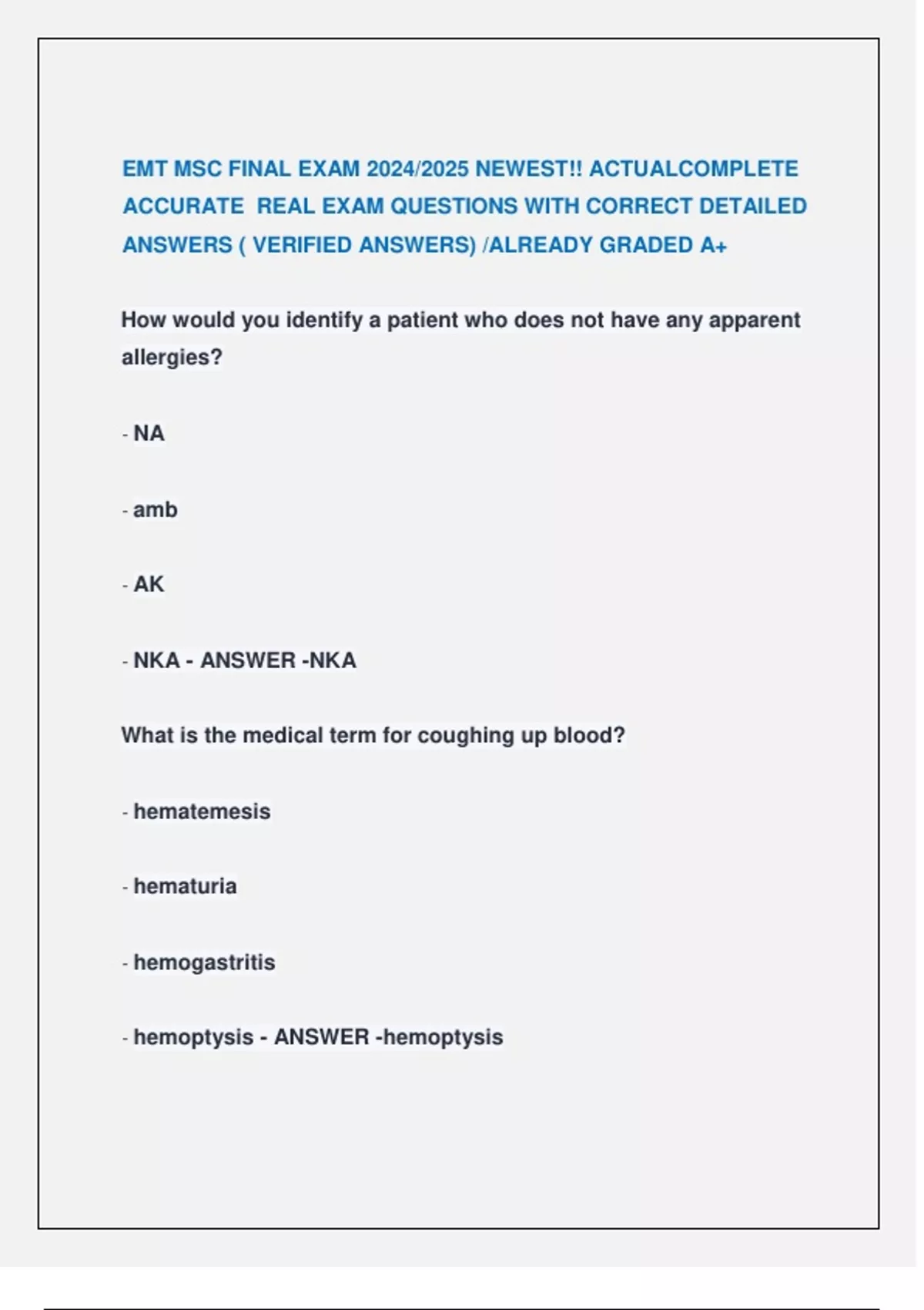 ACCURATE REAL EXAM QUESTIONS WITH CORRECT DETAILED