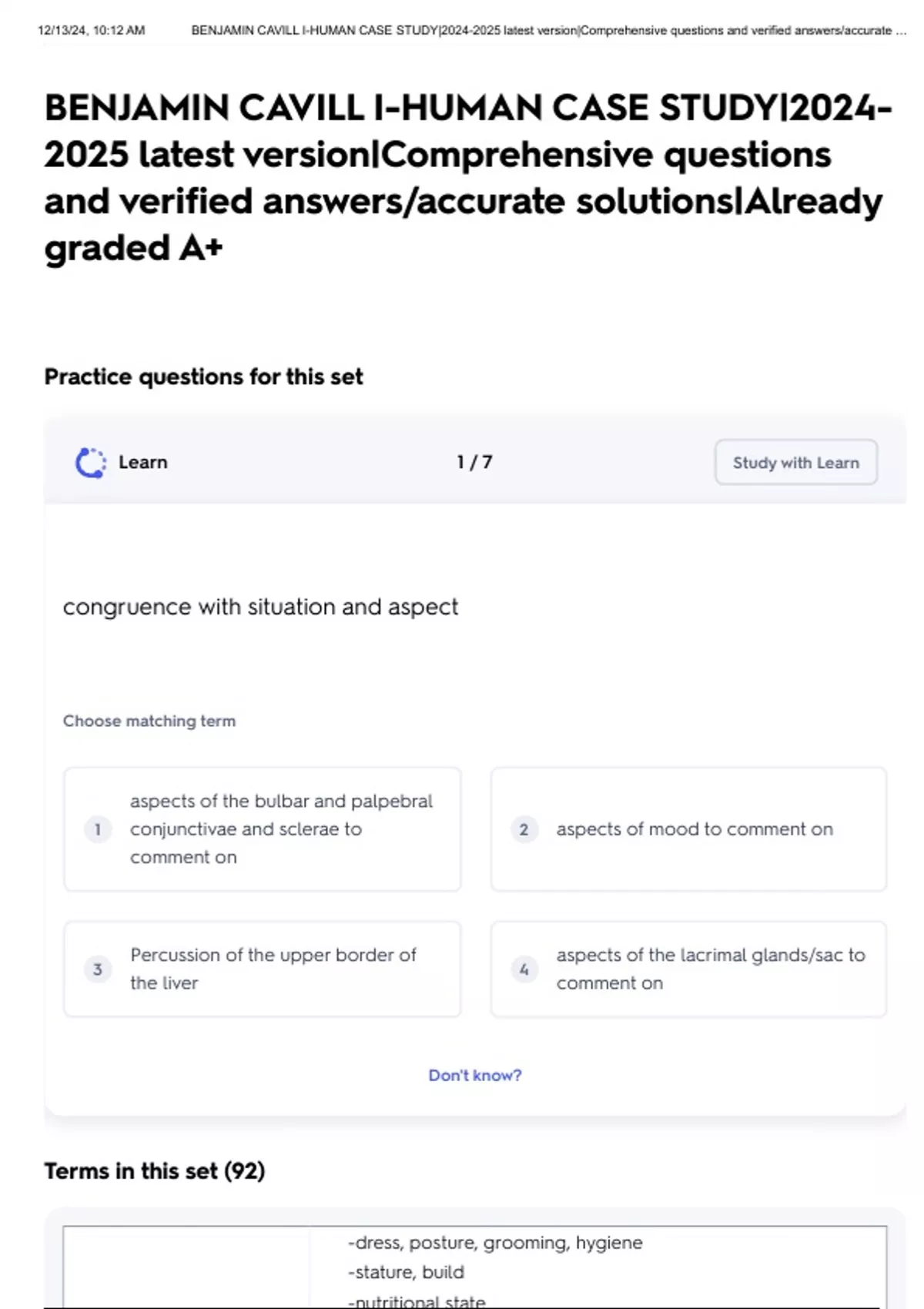 , 12/13/24, 10:12 AM BENJAMIN CAVILL I-HUMAN CASE STUDY|2024-2025 latest version|Comprehensive questions and verified answers/accurate …
