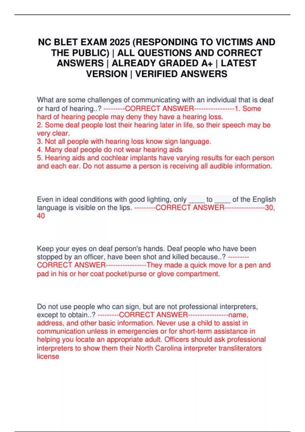 NC BLET EXAM 2025 (RESPONDING TO VICTIMS AND THE PUBLIC) | ALL QUESTIONS AND CORRECT ANSWERS | ALREADY GRADED A+ | LATEST VERSION | VERIFIED ANSWERS