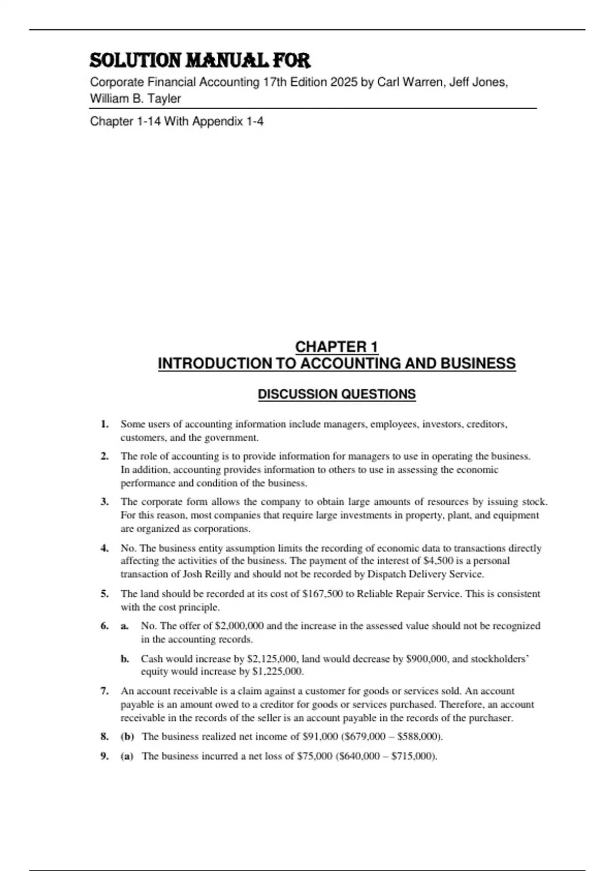 9. (a) The business incurred a net loss of $75,000 ($640,000 – $715,000).