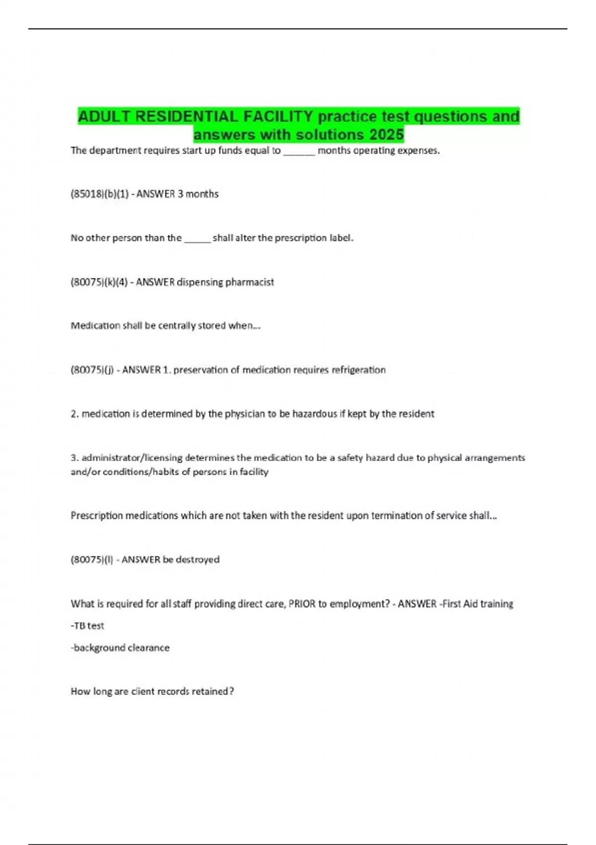 ADULT RESIDENTIAL FACILITY practice test questions and answers with solutions 2025