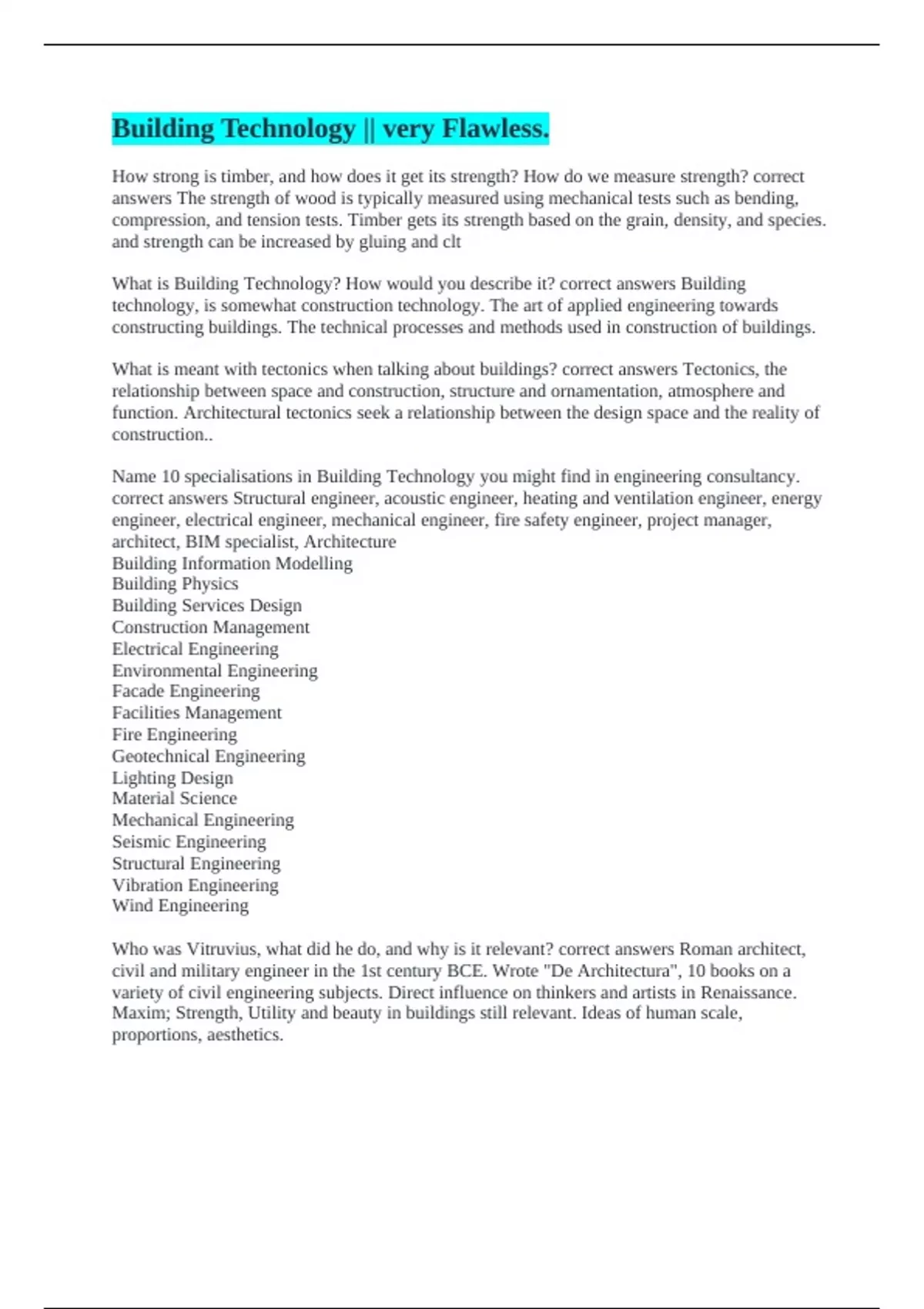 What is Building Technology? How would you describe it? correct answers Building