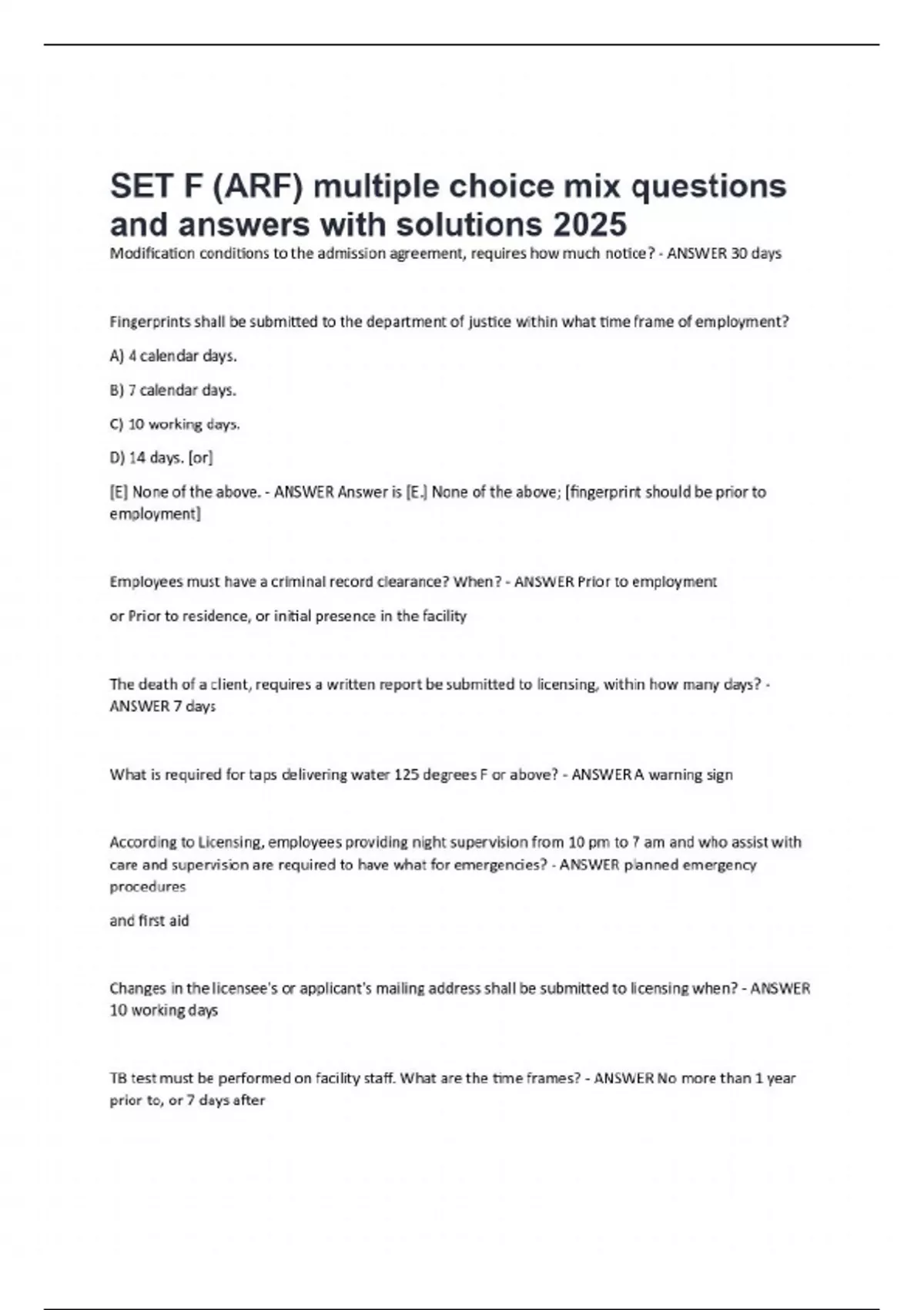 SET F (ARF) multiple choice mix questions and answers with solutions 2025