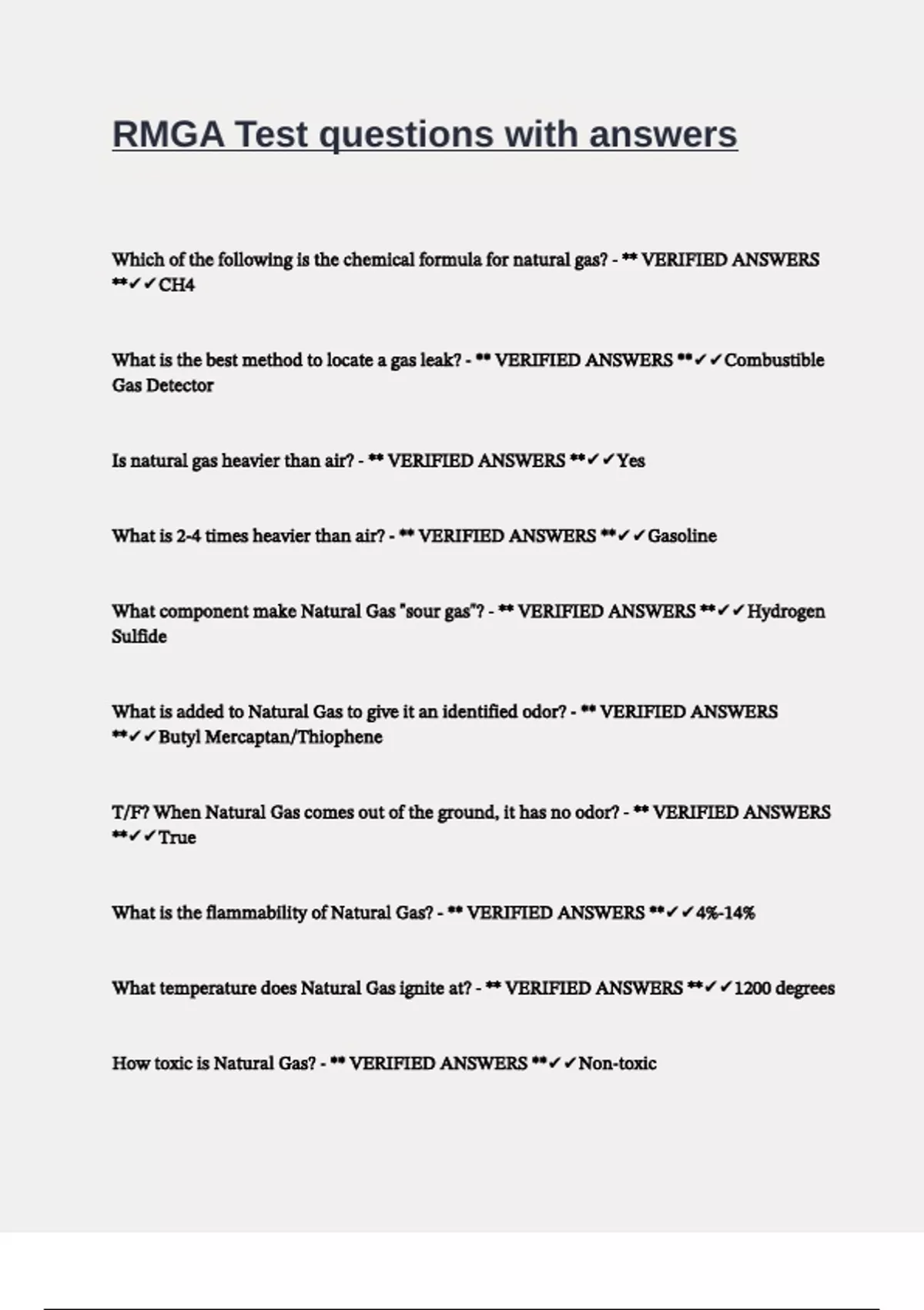 Which of the following is the chemical formula for natural gas? - ** VERIFIED ANSWERS