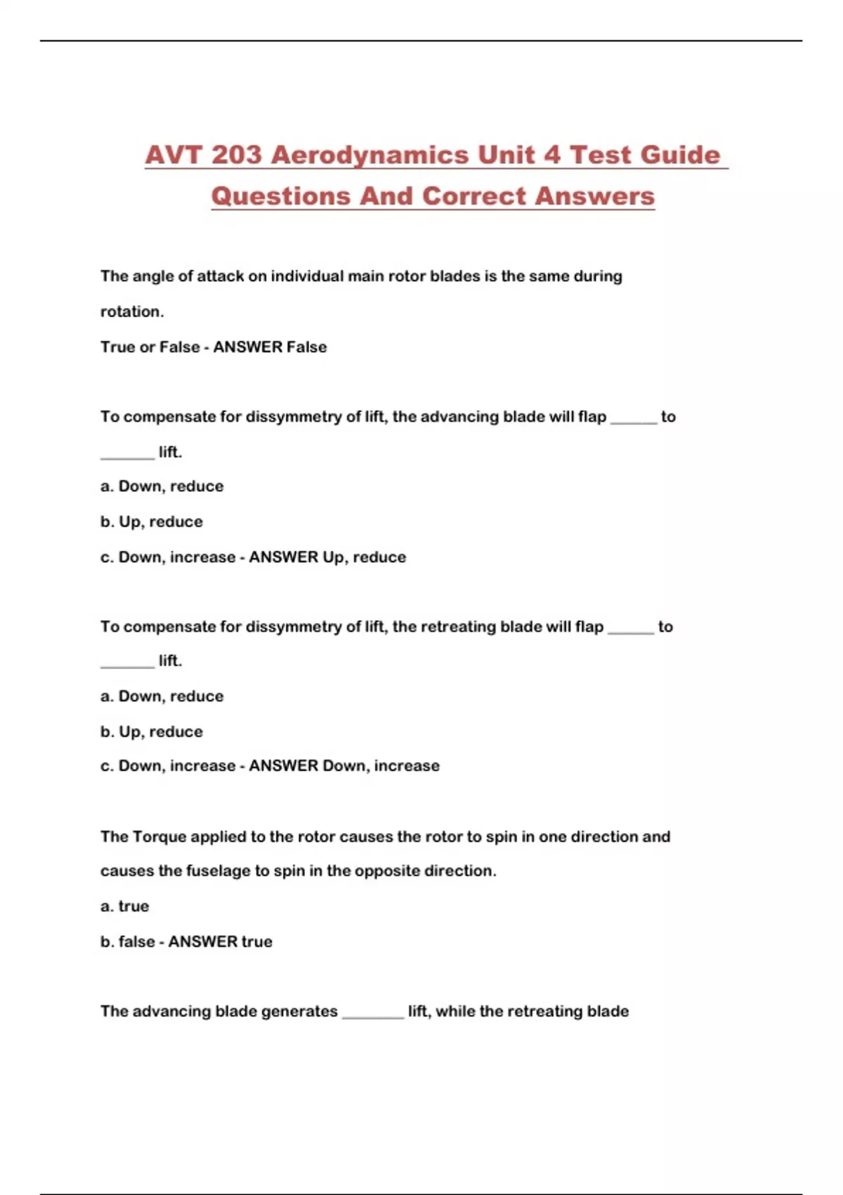 AVT 203 Aerodynamics Unit 4 Test Guide