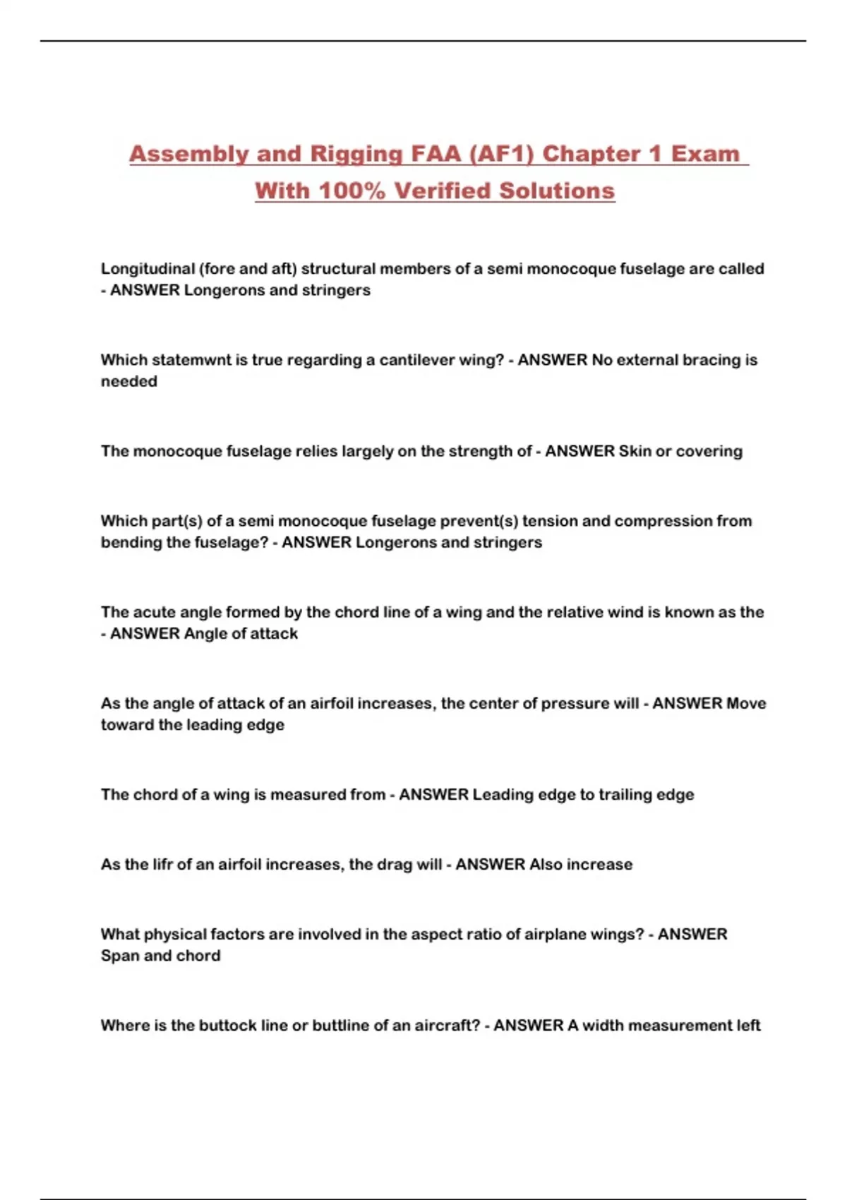 Assembly and Rigging FAA (AF1) Chapter 1 Exam With 100% Verified Solutions...