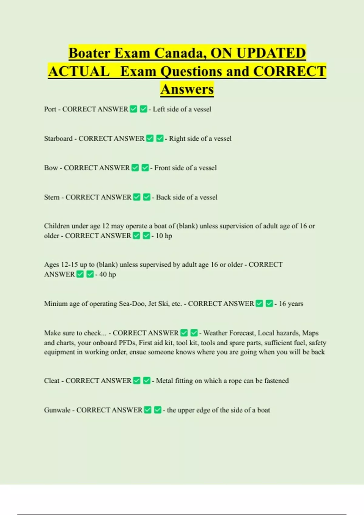 Minium age of operating Sea-Doo, Jet Ski, etc. - CORRECT ANSWER - 16 years