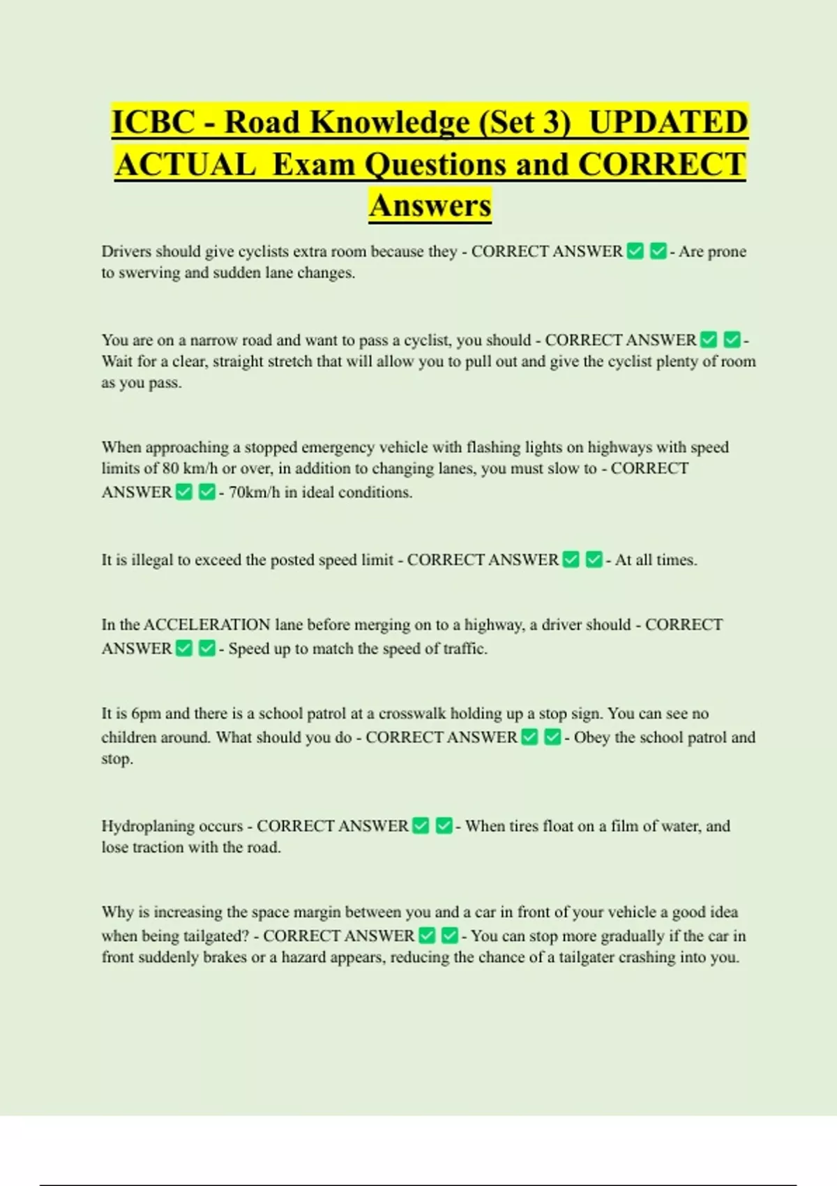 ICBC - Road Knowledge (Set 3) UPDATED ACTUAL Exam Questions and CORRECT Answers
