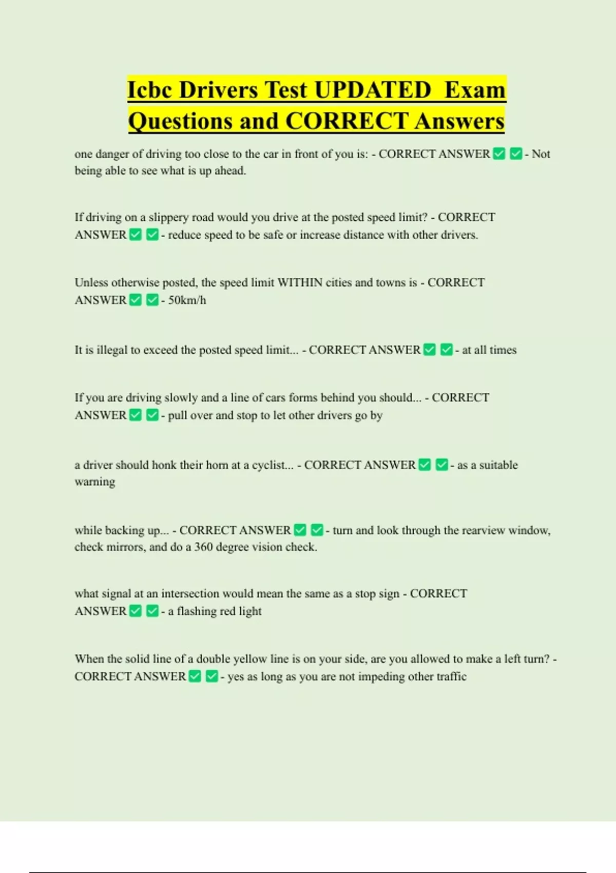 Icbc Drivers Test UPDATED Exam Questions and CORRECT Answers