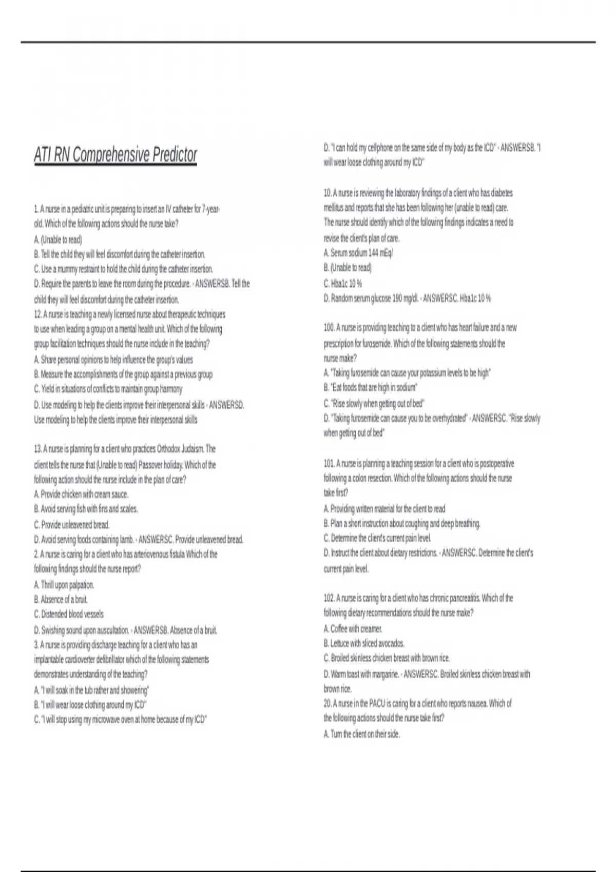 ATI RN Comprehensive Predictor will wear loose clothing around my ICD"