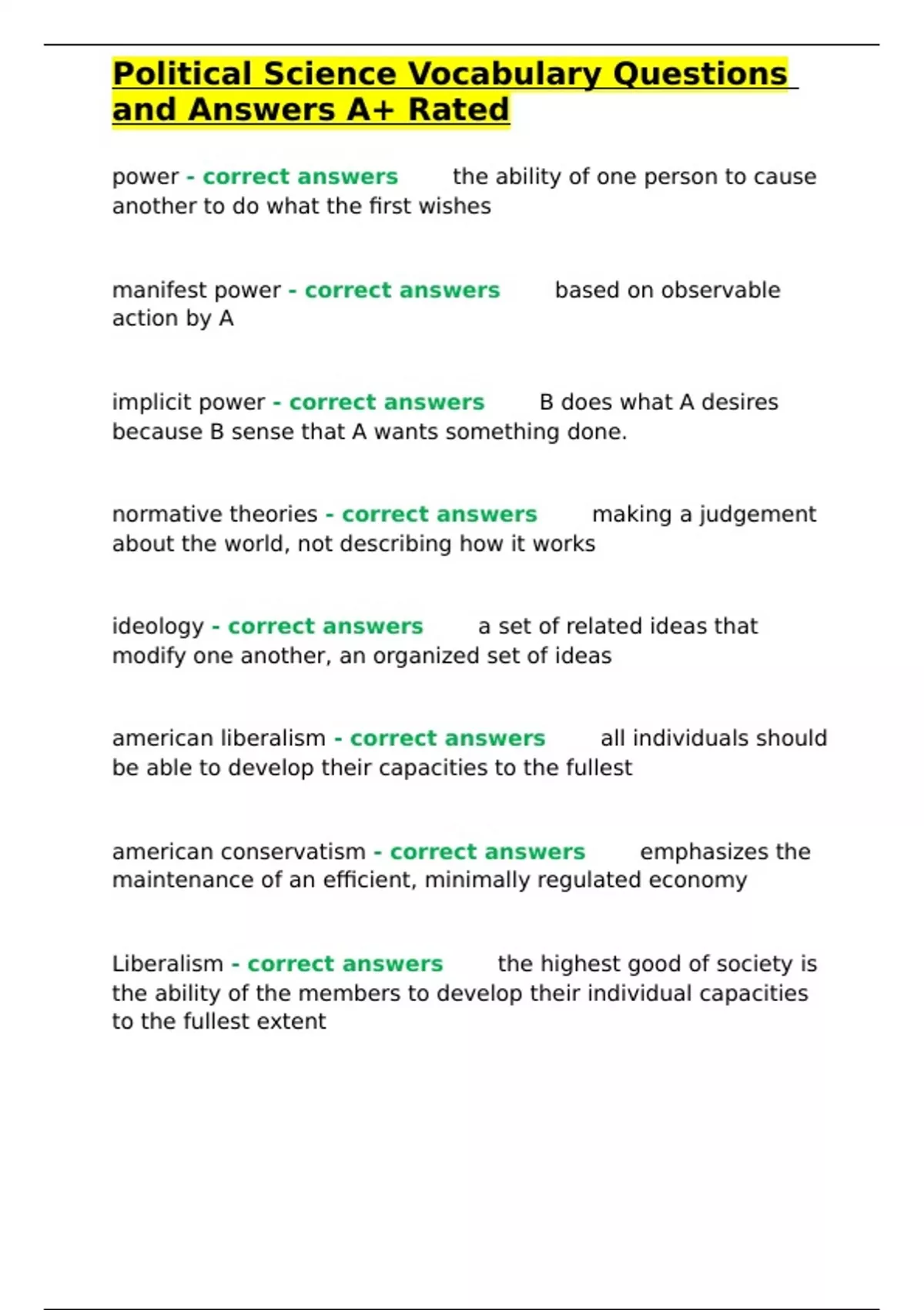 Liberalism - correct answers✅✅the highest good of society is