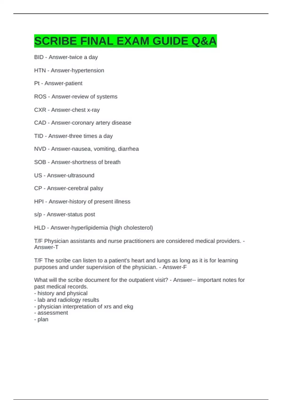 SCRIBE FINAL EXAM GUIDE Q&A
