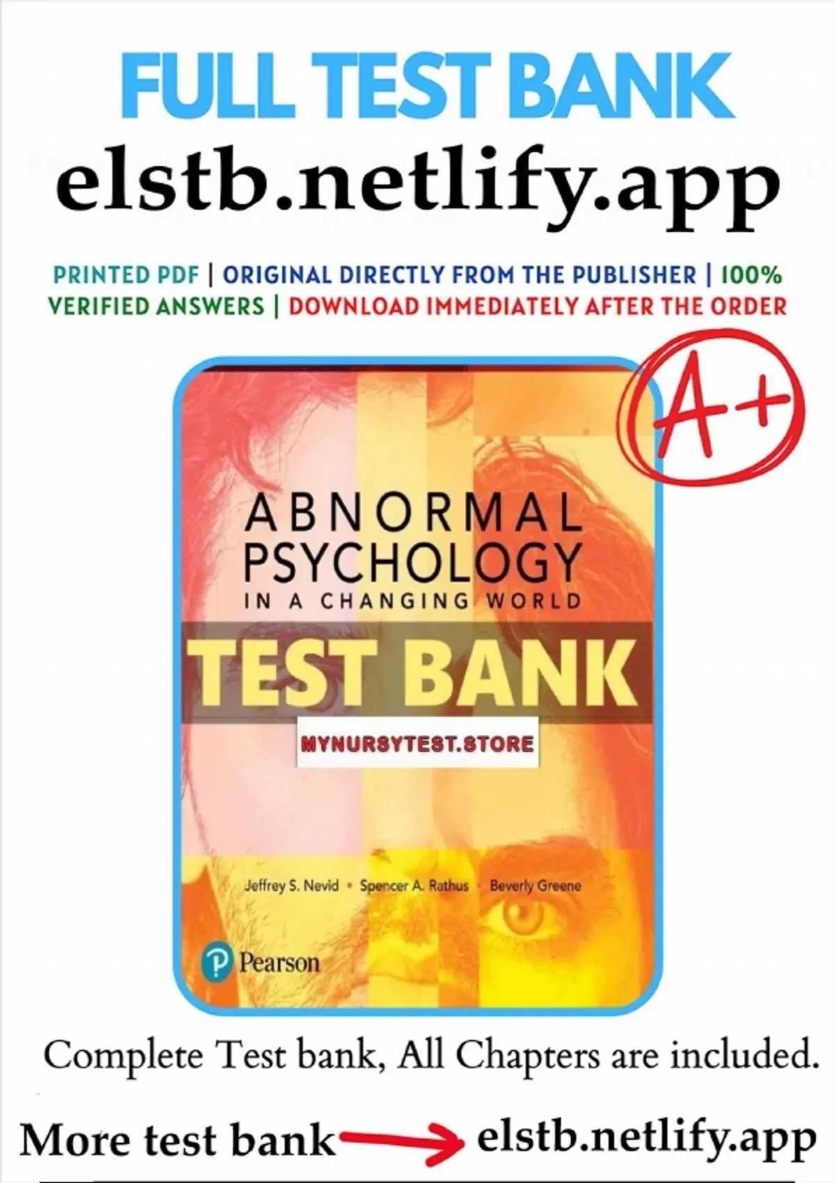 , DOWNLOAD THE Test Bank for Abnormal Psychology in Changing World 10th