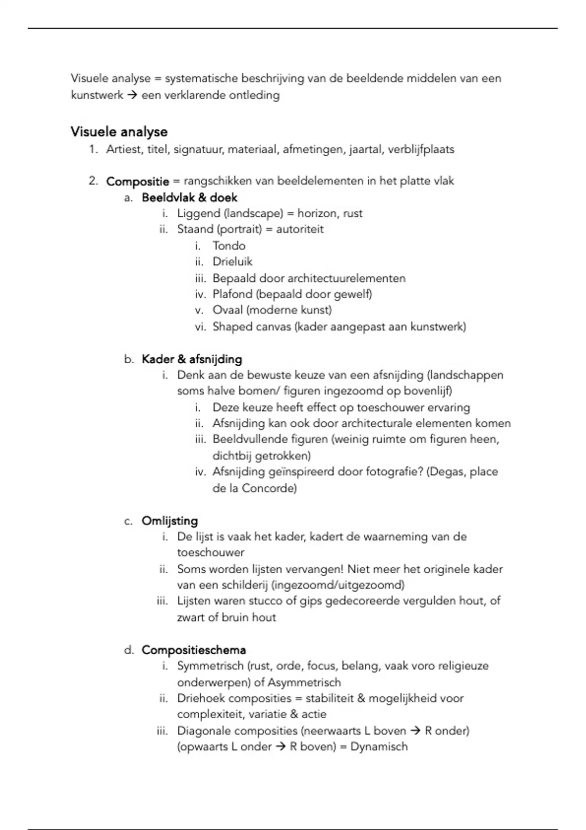 Visuele analyse = systematische beschrijving van de beeldende middelen van een