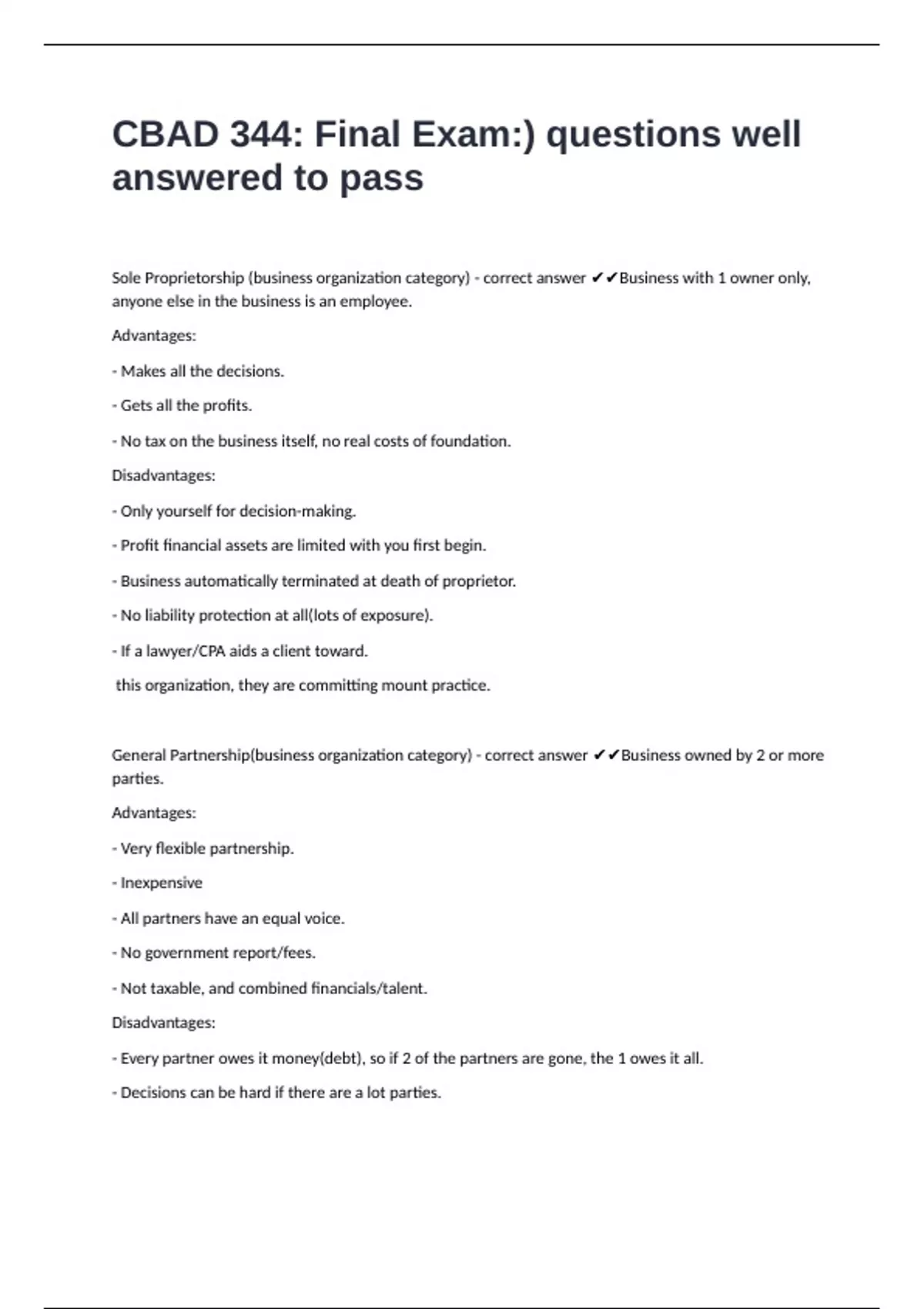 General Partnership(business organization category) - correct answer ✔✔Business owned by 2 or more