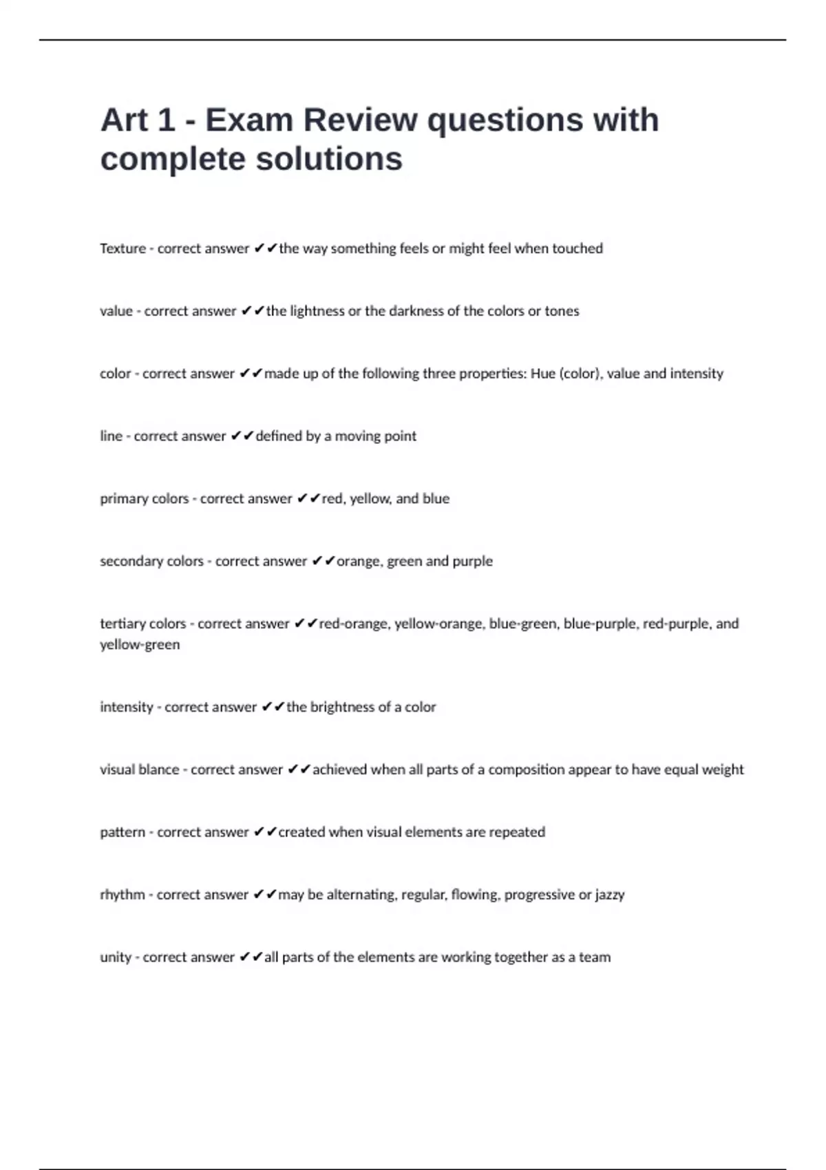 Texture - correct answer ✔✔the way something feels or might feel when touched