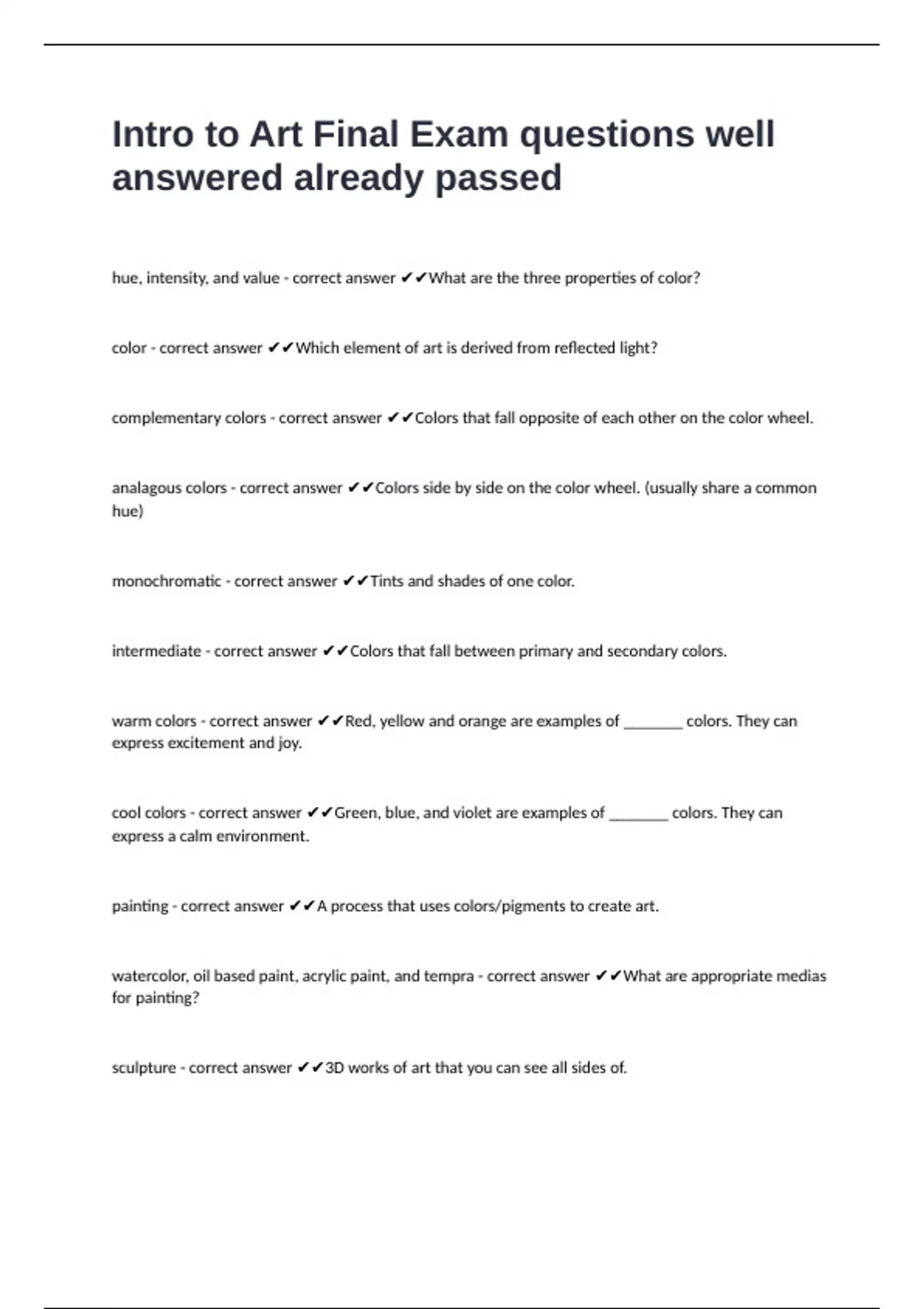 hue, intensity, and value - correct answer ✔✔What are the three properties of color?