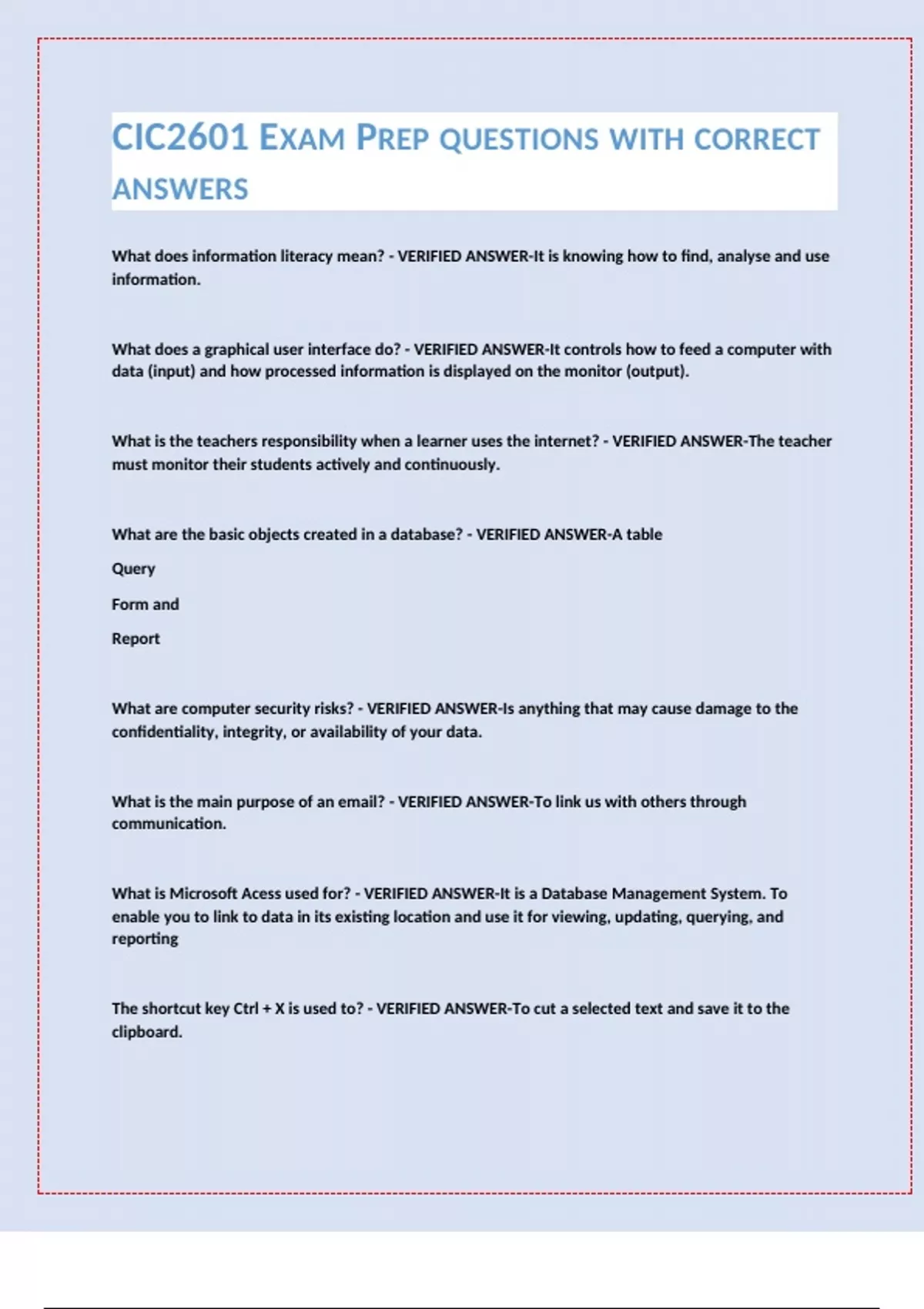 CIC2601 EXAM PREP QUESTIONS WITH CORRECT