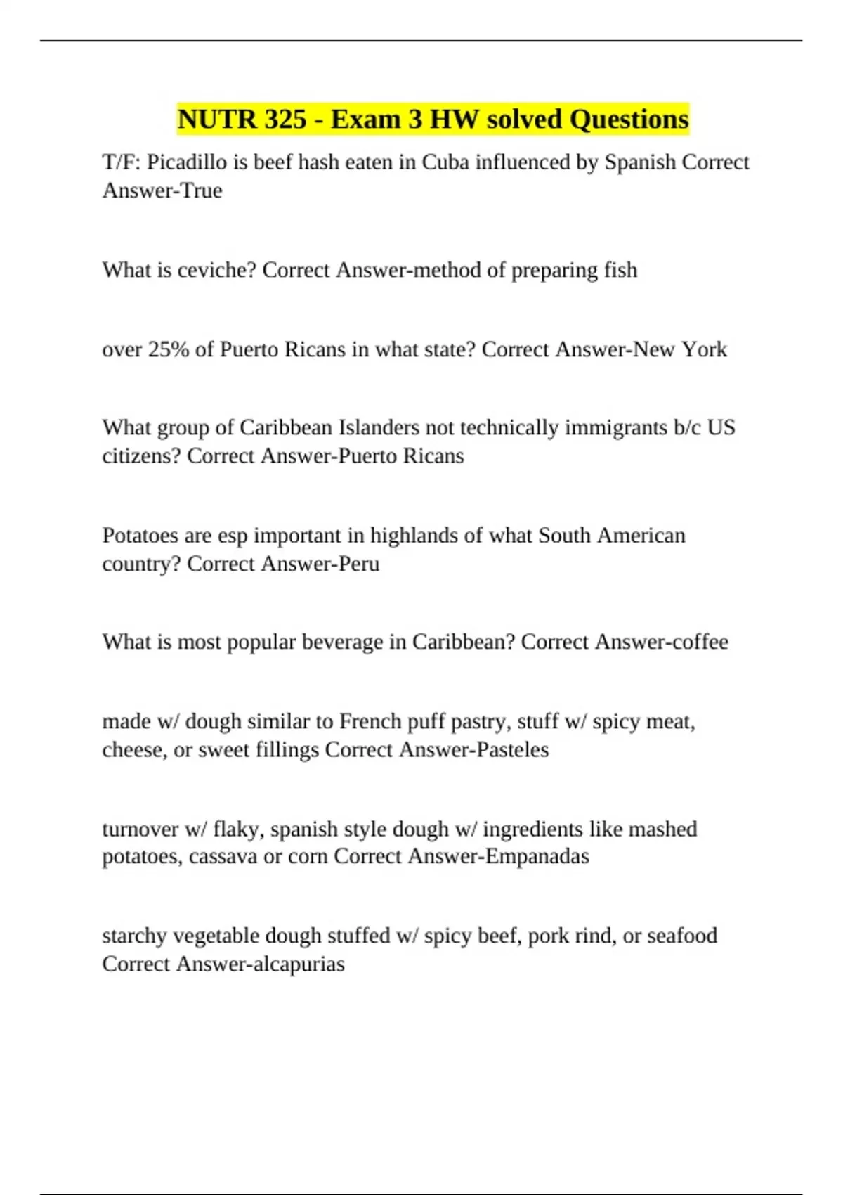 potatoes, cassava or corn Correct Answer-Empanadas