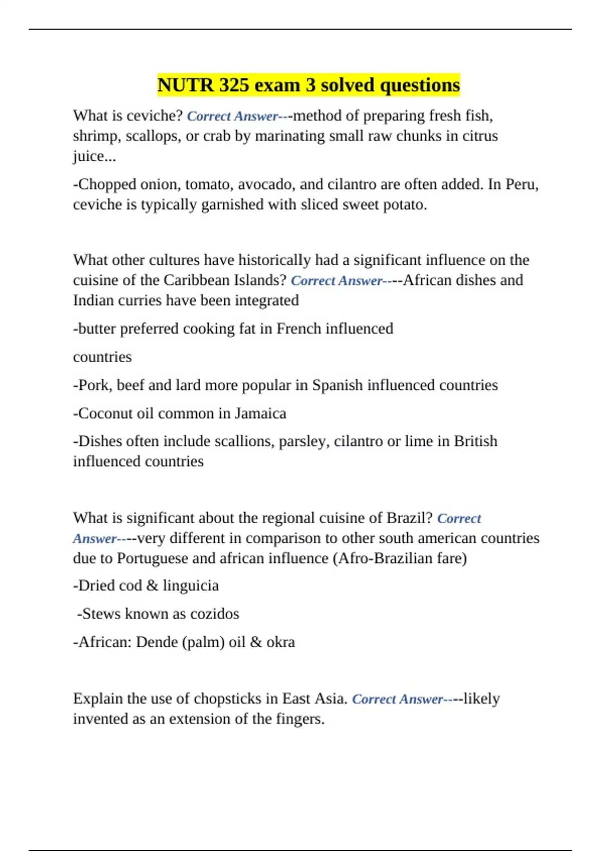 What is ceviche? Correct Answer---method of preparing fresh fish,
