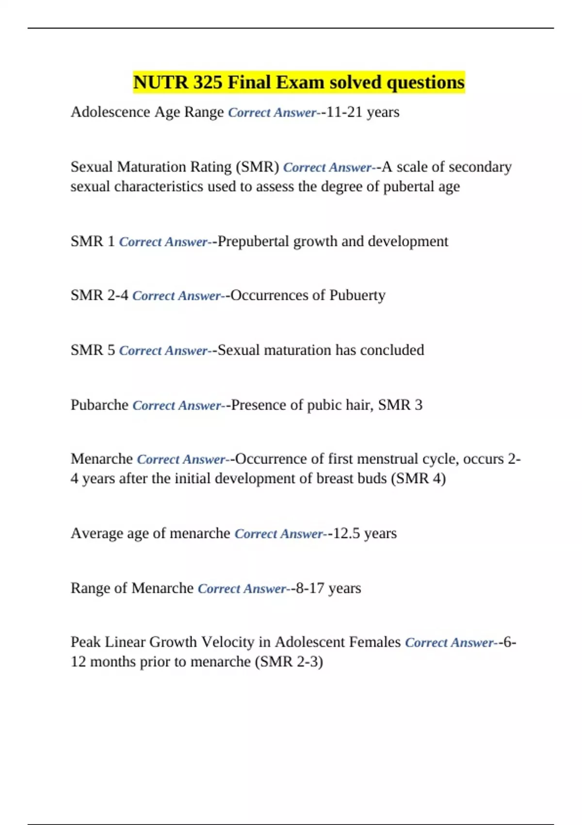 SMR 2-4 Correct Answer--Occurrences of Pubuerty