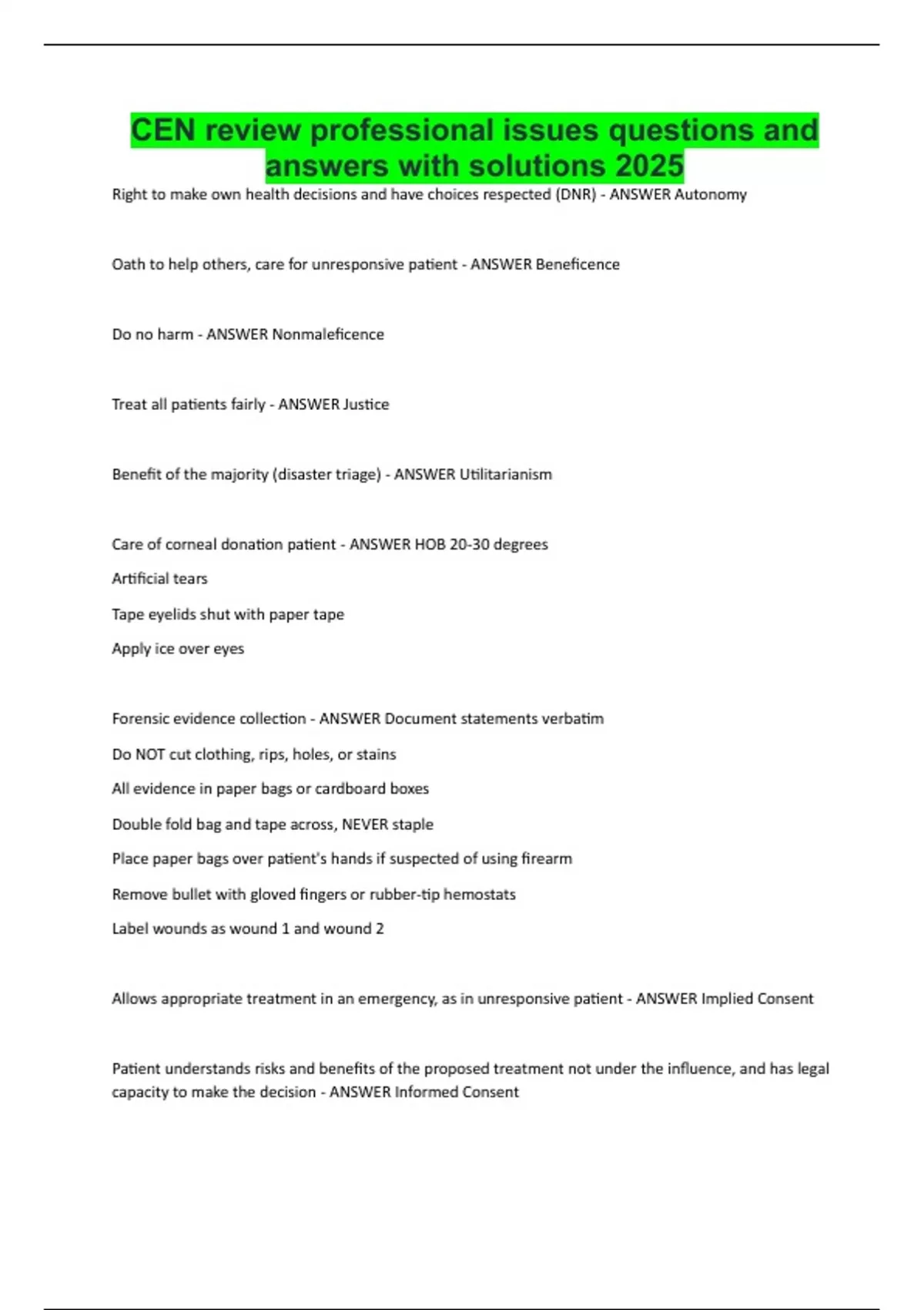 Right to make own health decisions and have choices respected (DNR) - ANSWER Autonomy
