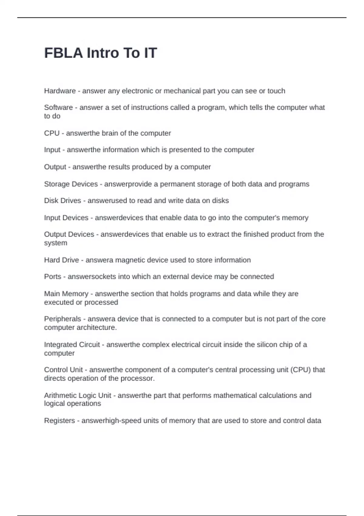 Peripherals - answera device that is connected to a computer but is not part of the core