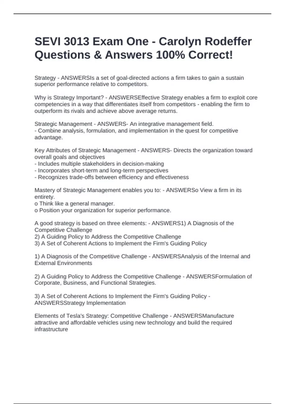 Strategic Management - ANSWERS- An integrative management field.