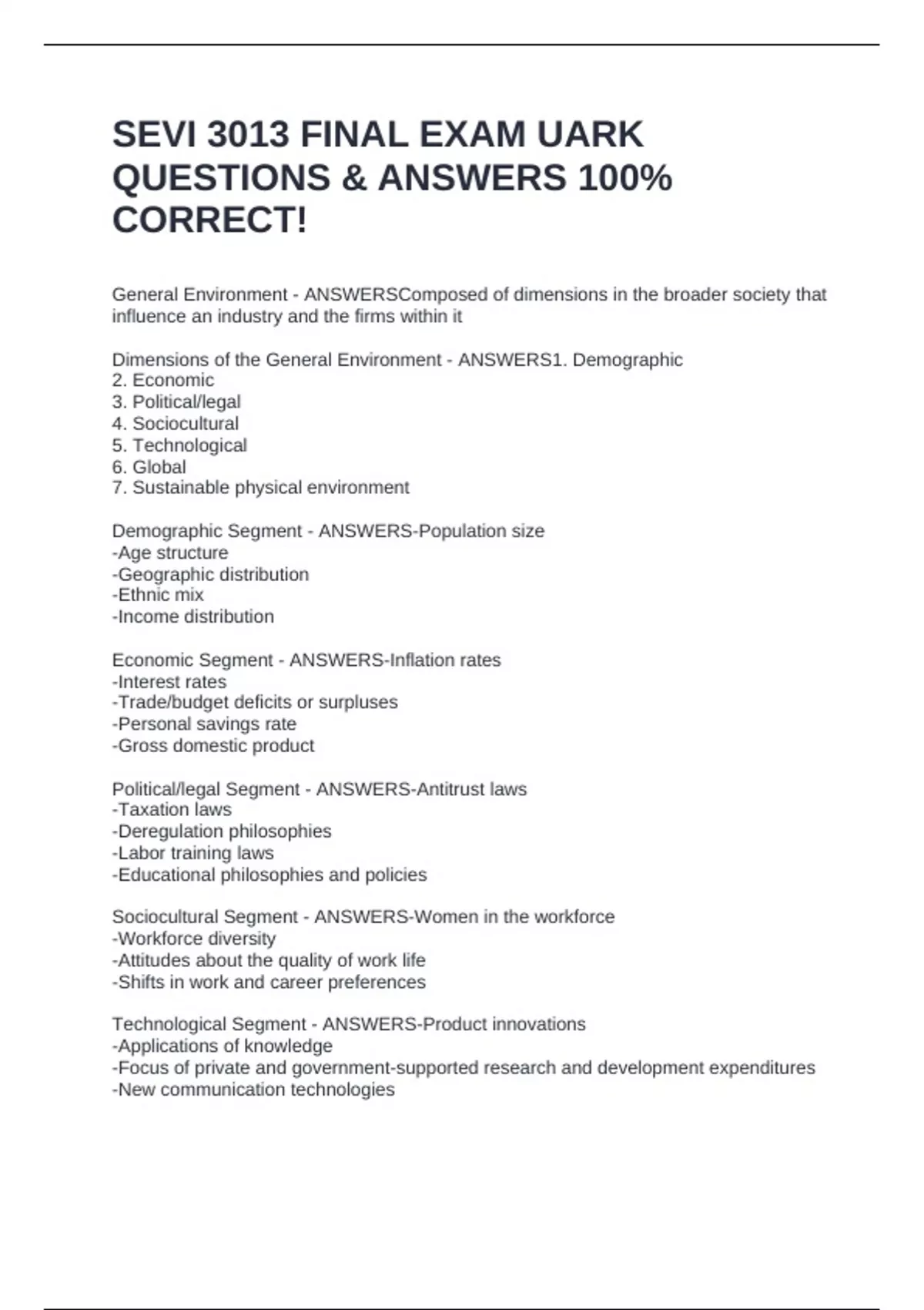 SEVI 3013 FINAL EXAM UARK QUESTIONS & ANSWERS 100% CORRECT!