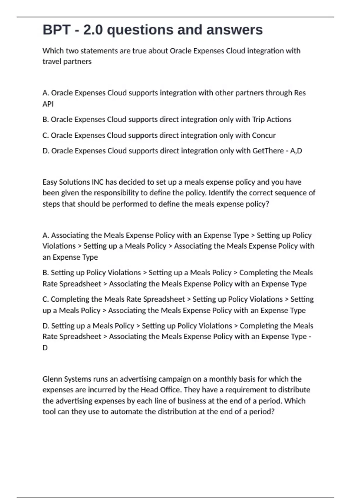 D. Oracle Expenses Cloud supports direct integration only with GetThere - A,D