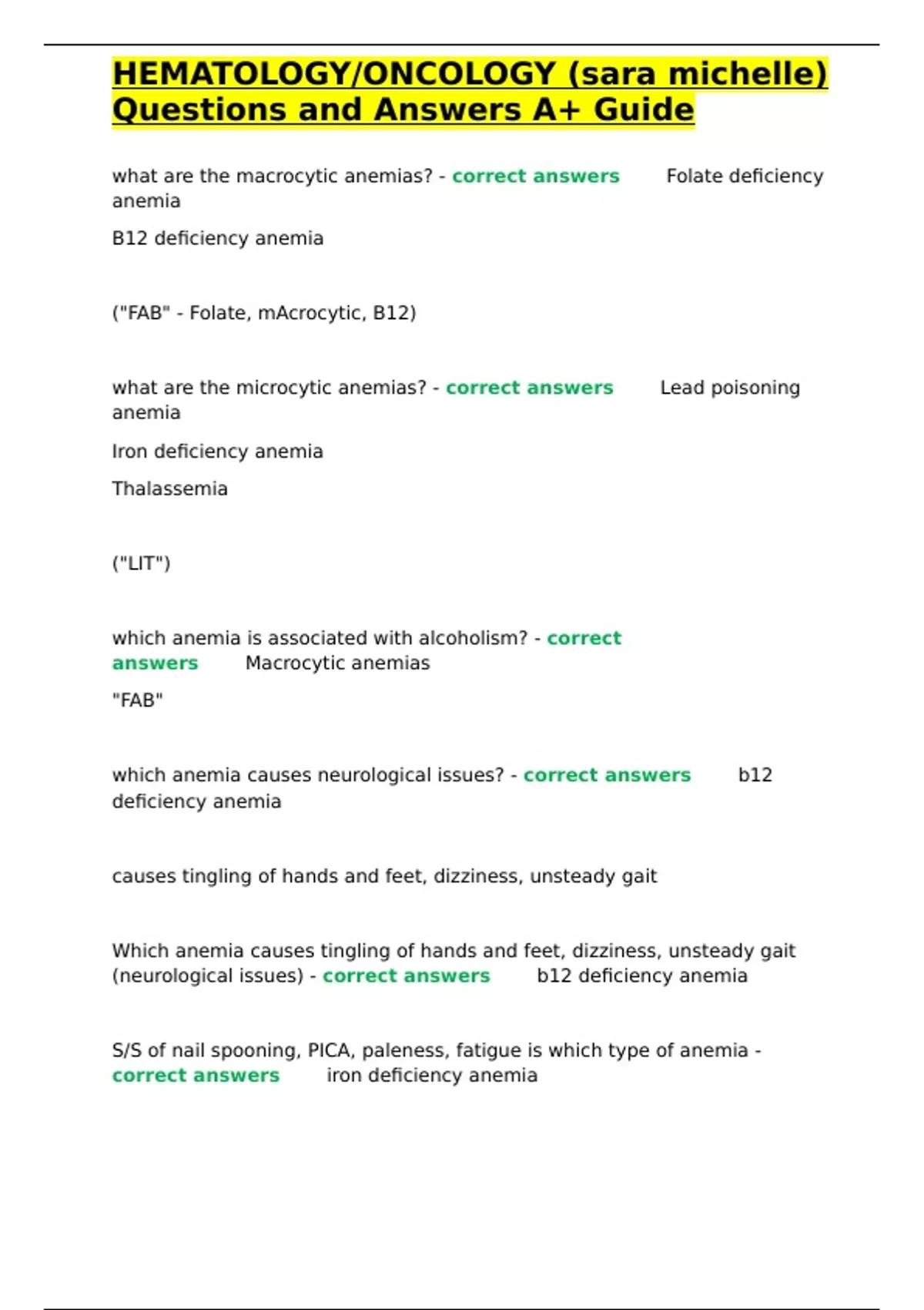 (neurological issues) - correct answers✅✅b12 deficiency anemia