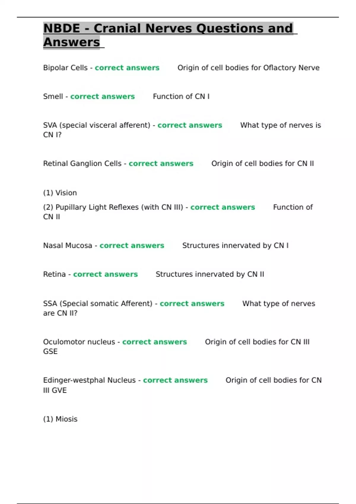 , NBDE - Cranial Nerves Questions and