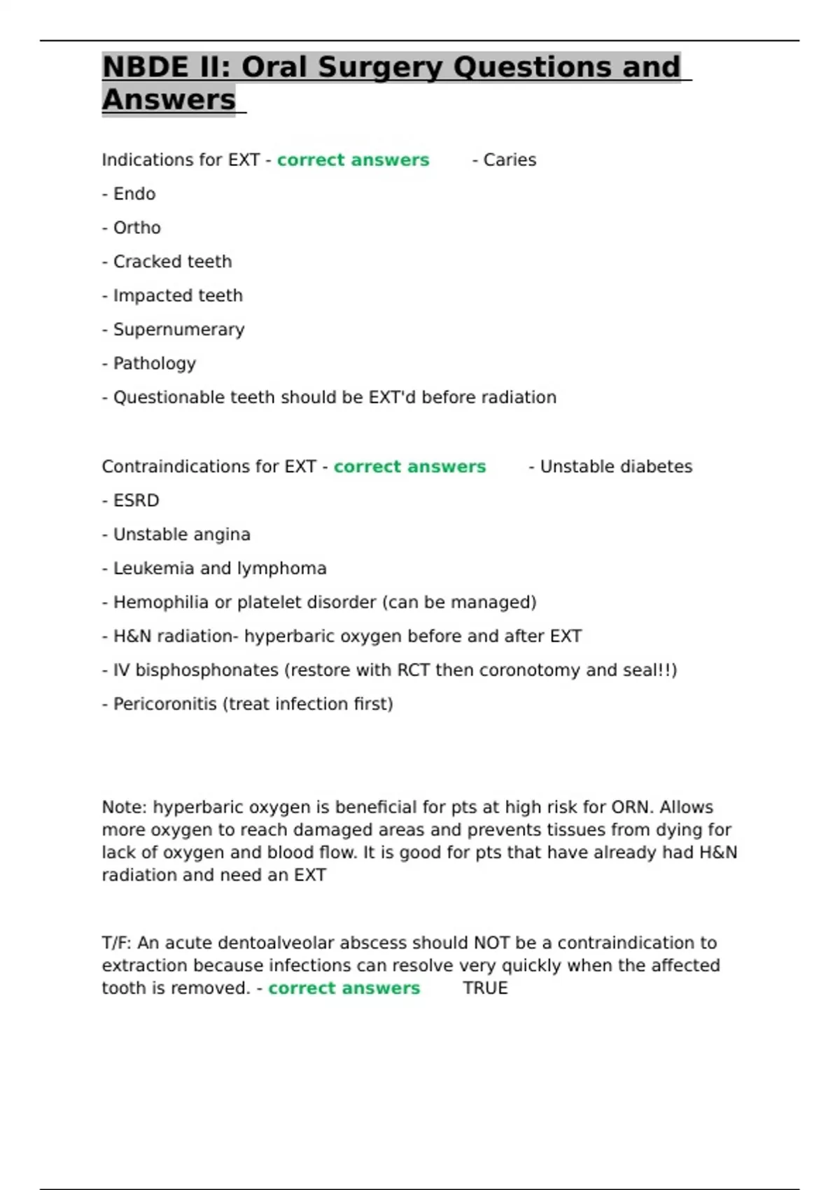 Note: hyperbaric oxygen is beneficial for pts at high risk for ORN. Allows