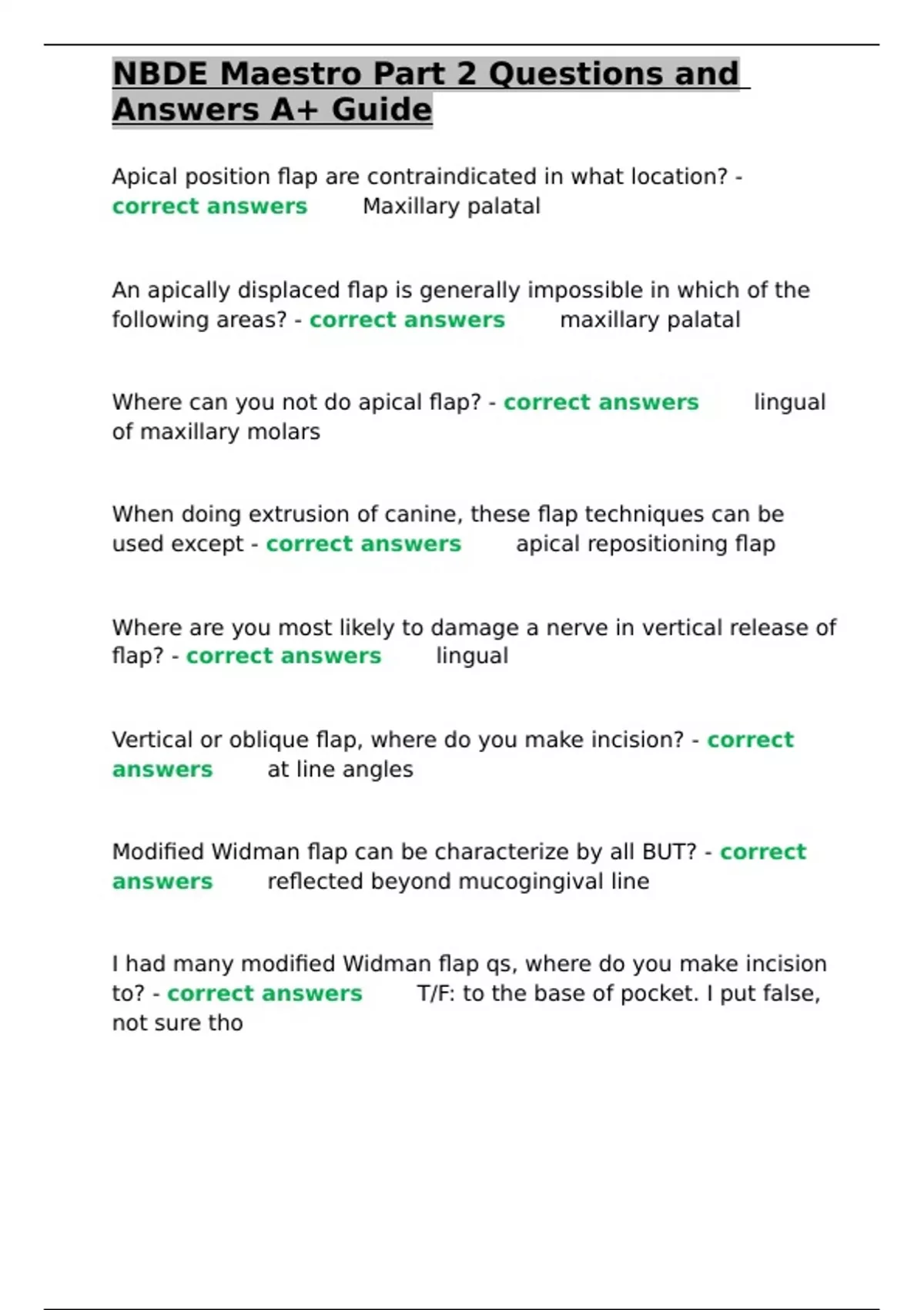 NBDE Maestro Part 2 Questions and Answers A+ Guide
