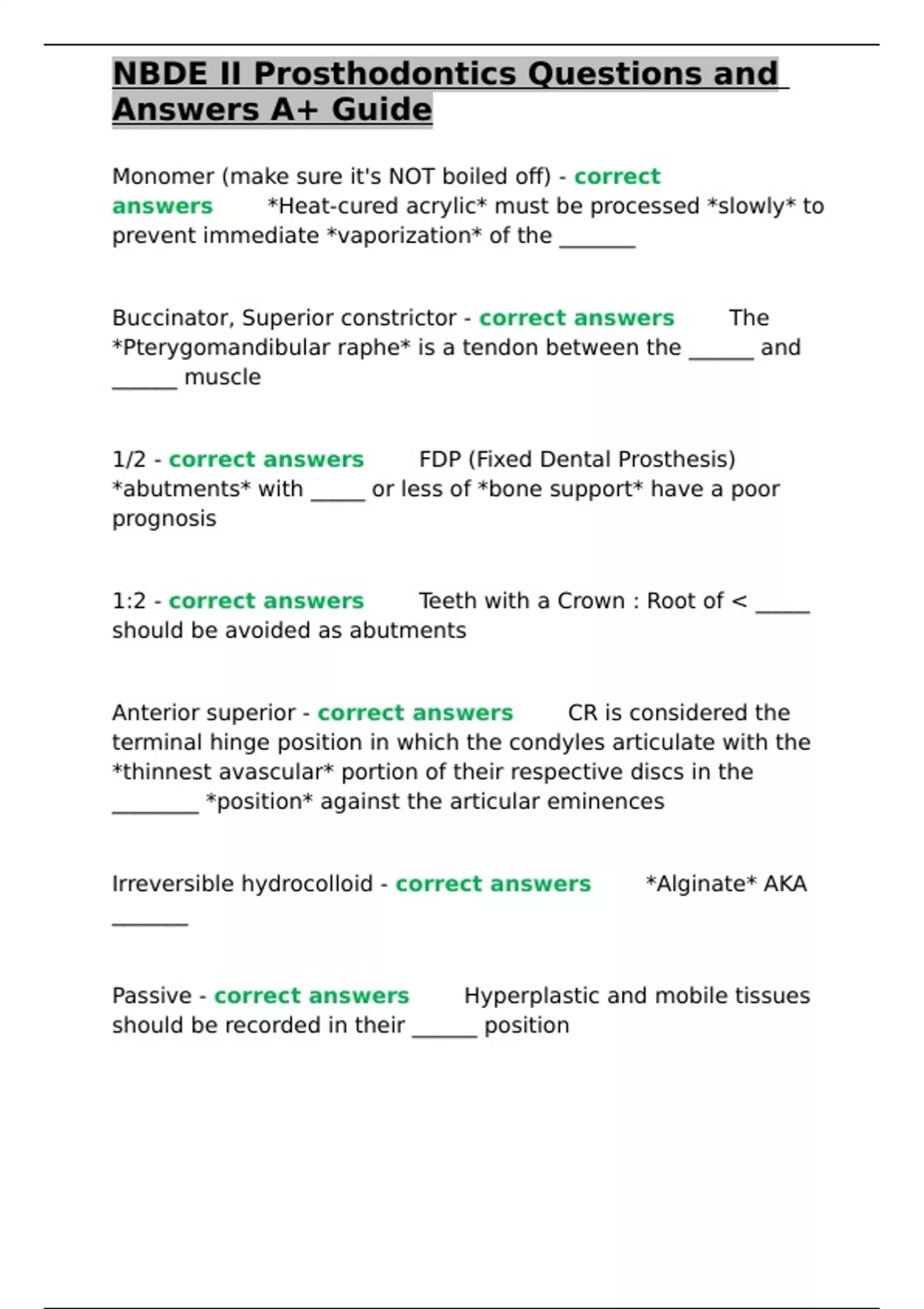 , NBDE II Prosthodontics Questions and