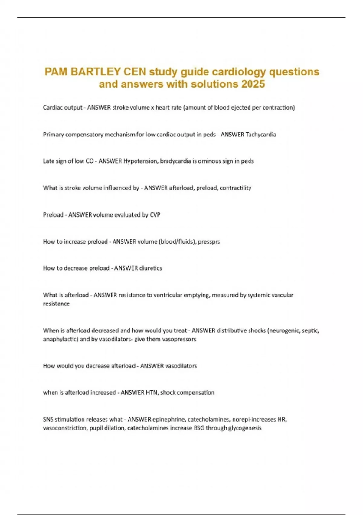 PAM BARTLEY CEN study guide cardiology questions and answers with solutions 2025