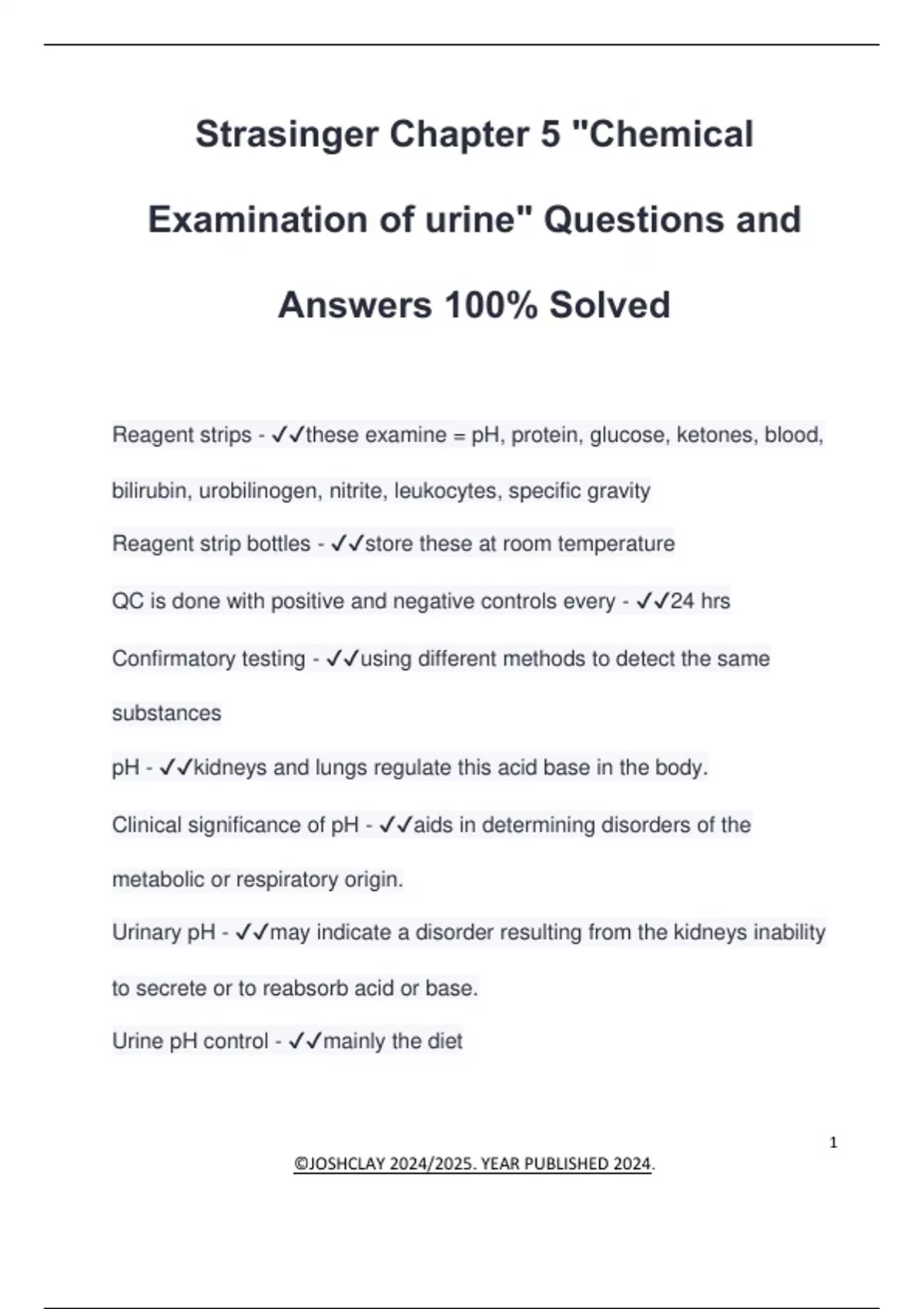 Reagent strips - ✔✔these examine = pH, protein, glucose, ketones, blood,