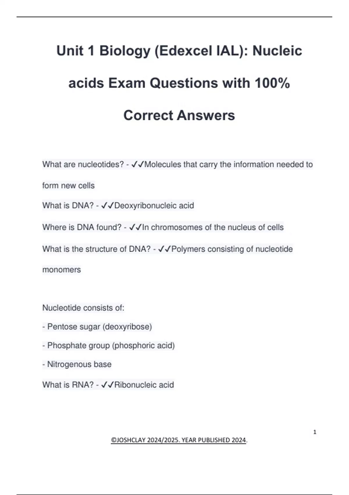 What is DNA? - ✔✔Deoxyribonucleic acid