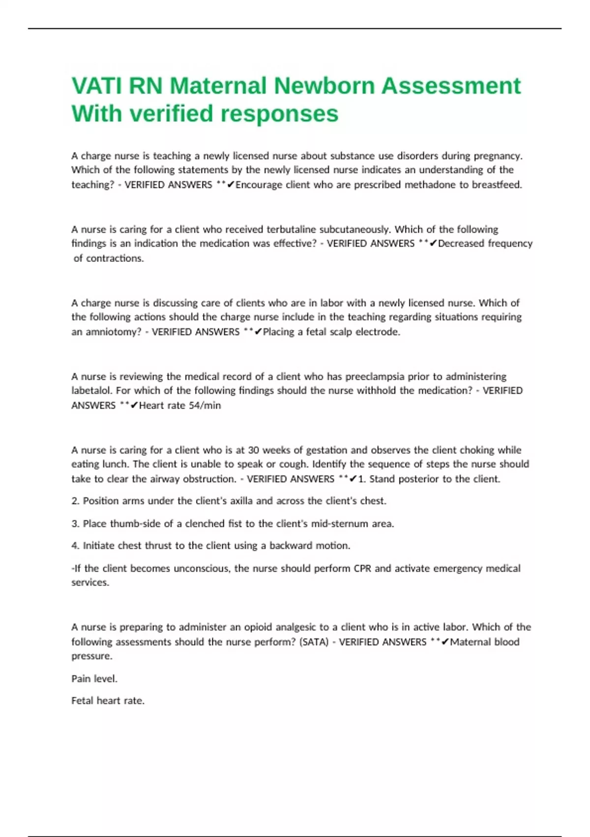 following |assessments |should |the |nurse |perform? |(SATA) |- |VERIFIED |ANSWERS |**✔Maternal |blood |