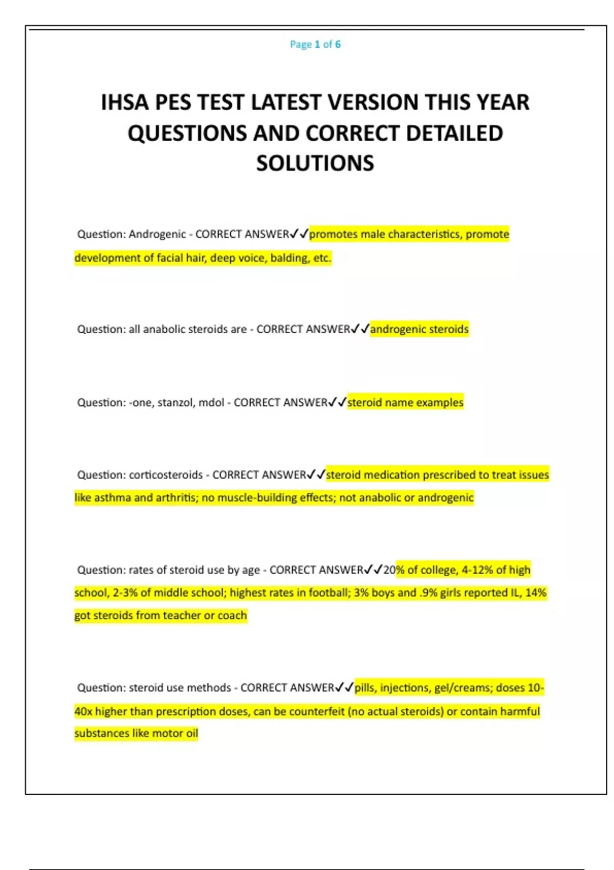 Question: steroid use methods - CORRECT ANSWER✔✔pills, injections, gel/creams; doses 10-
