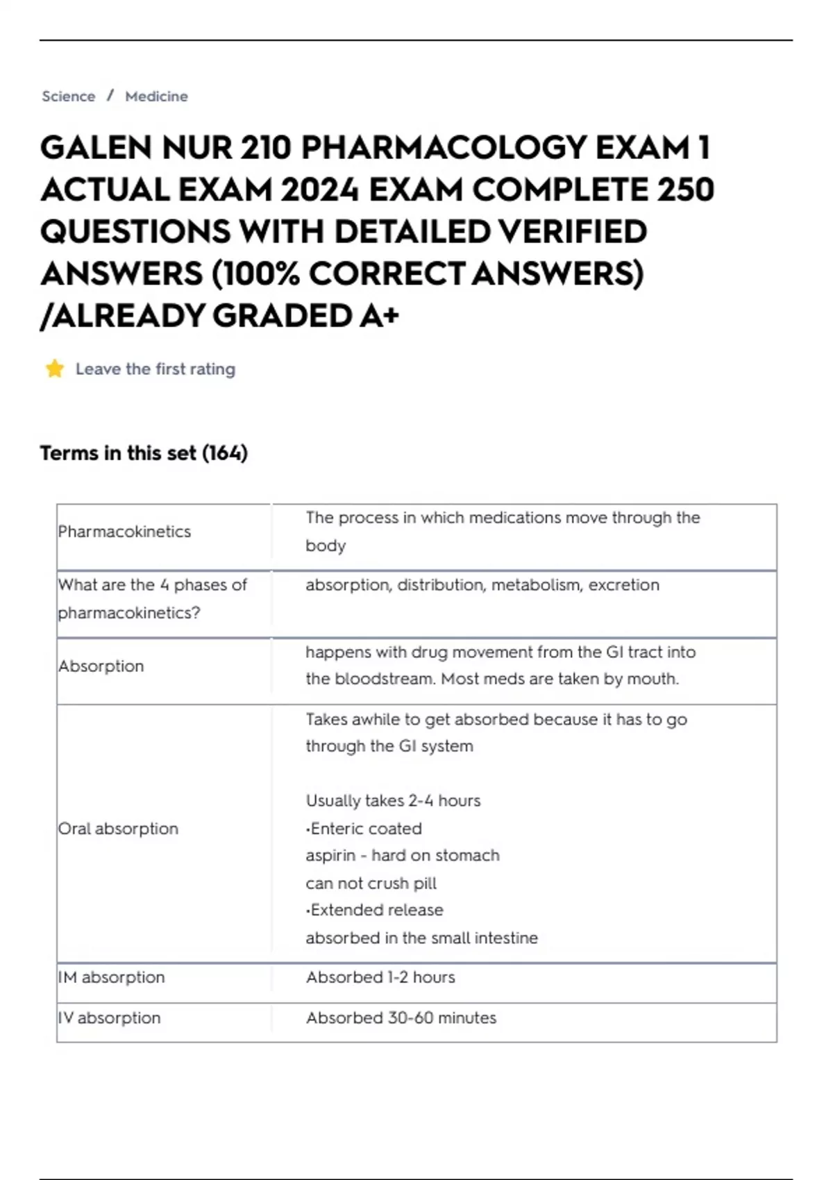 GALEN NUR 210 PHARMACOLOGY EXAM 1