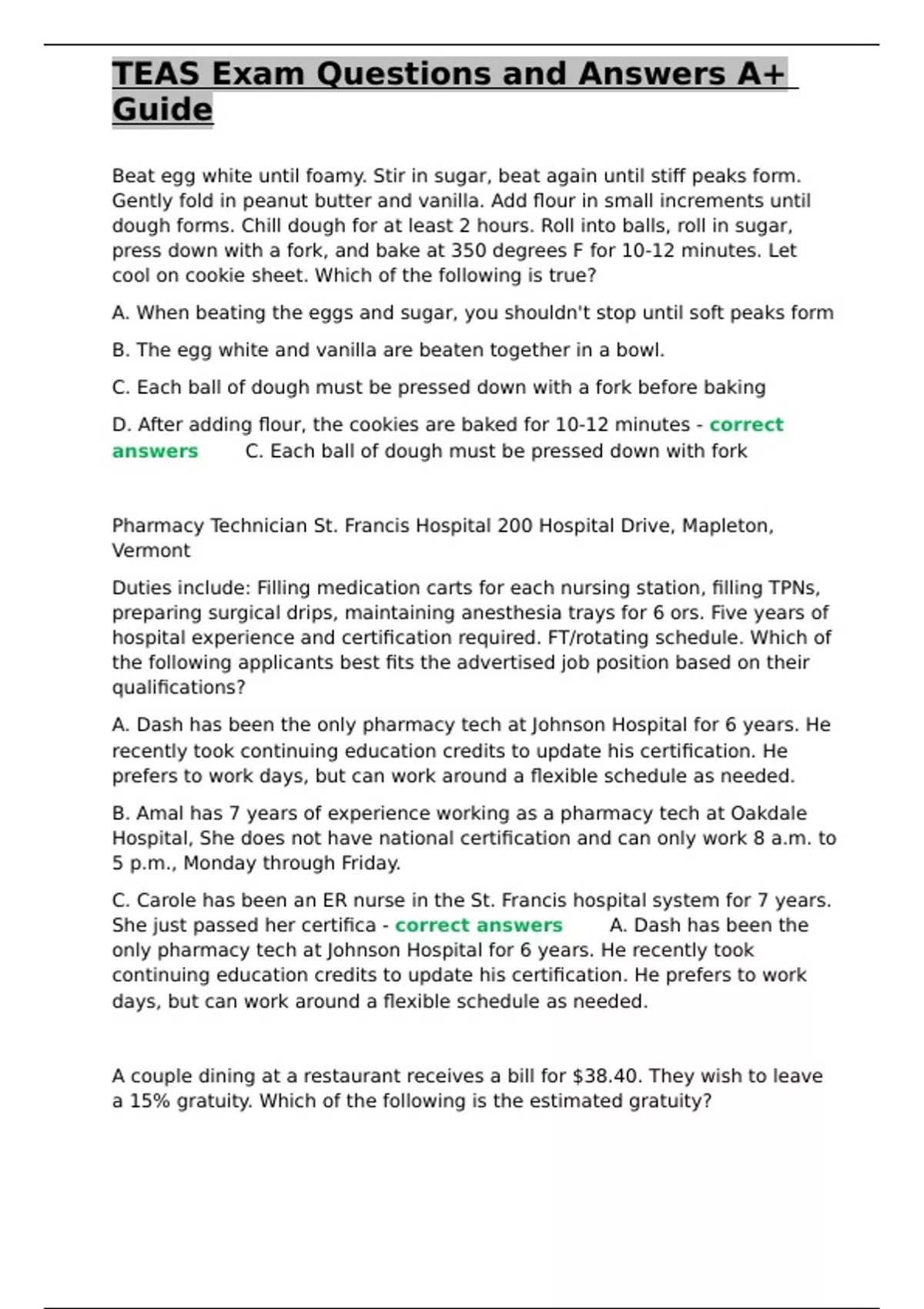 TEAS Exam Questions and Answers A+ Guide