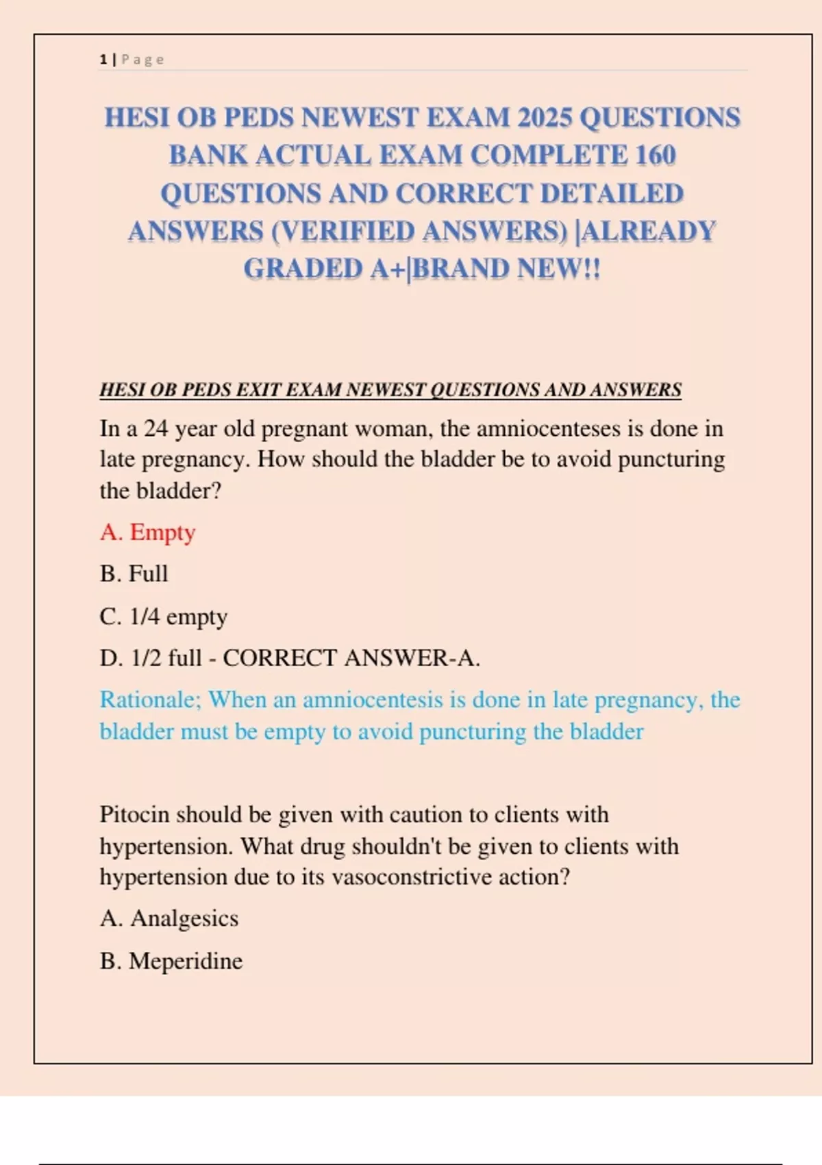 HESI OB PEDS NEWEST EXAM 2025 QUESTIONS