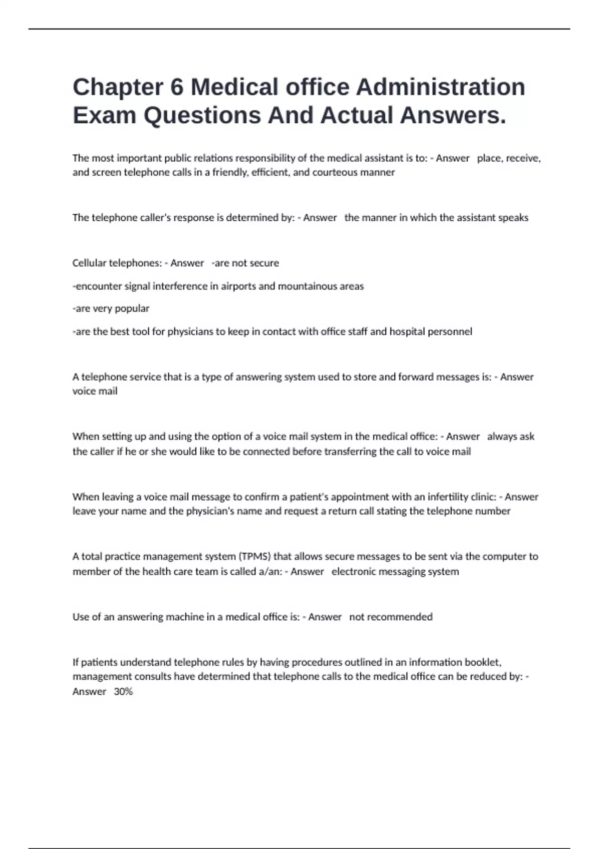 Chapter 6 Medical office Administration Exam Questions And Actual Answers.