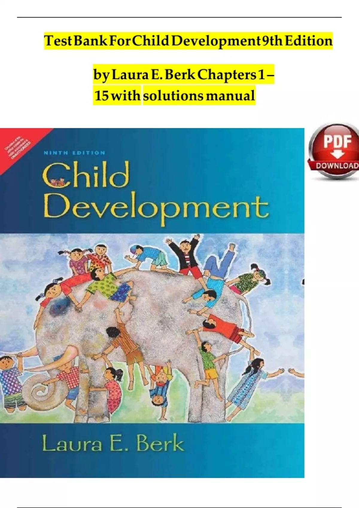 Test Bank For Child Development 9th Edition by Laura E. Berk Chapters |1 – 15 | with solutions manual | LATEST This comprehensive resource includes all Chapters, updated for and is ideal for; High-Quality Nursing Study Guide | Updated, Accurate & Easy to Understand This nursing document is a reliable, exam-ready resource designed for nursing students who want to pass confidently. It includes clear explanations, NCLEX-style questions, and essential nursing concepts based on the latest curriculum. Ideal for students in RN, BSN, ADN, and LPN programs. Whether you're preparing for midterms, finals, ATI, HESI, or NCLEX, this material will save your study time and boost your grades. Trusted by thousands of nursing students Perfect for last-minute revision or in-depth review Covers critical nursing topics with clinical relevance